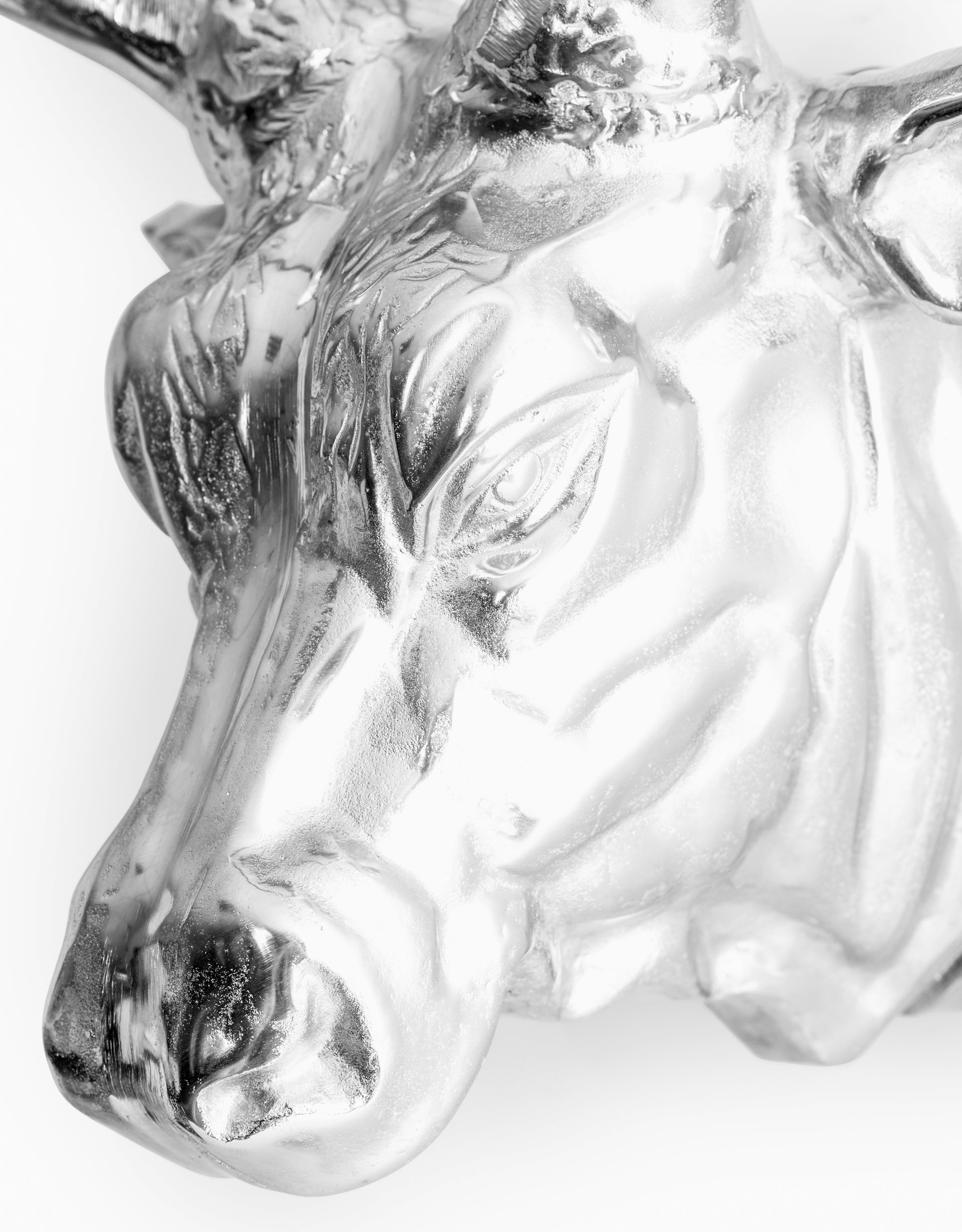 Enhance your living space with our Aluminium Polished Bull Wall Head. Made from high-quality aluminium, this wall head features a sleek and polished design that will add a touch of modern elegance to any room. The perfect accent piece for any bull or animal lover, this wall head is sure to impress and make a statement in your home.