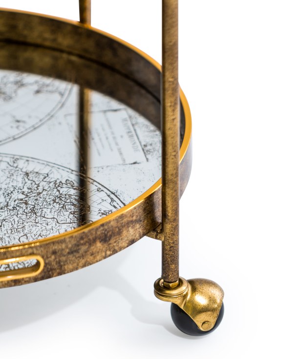 Antique Gold Drinks Trolley with Mirrored Serving Trays