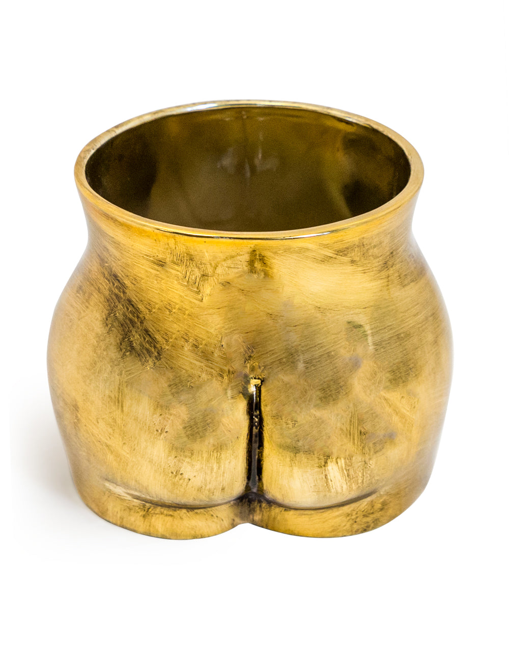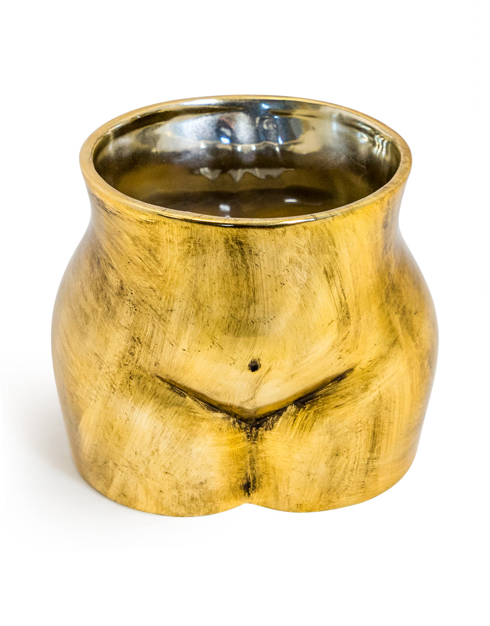 Get ready to add some quirkiness to your home decor with our Antique Gold Large Booty Flower Pot/ Storage Jar! This unique flower pot features a playful design and adds a touch of humour to any room. Perfect for holding flowers or standing alone as a statement piece.