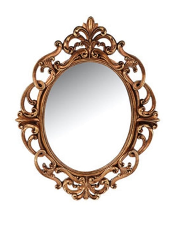Antique Gold Ornate Baroque Oval Wall Mirror