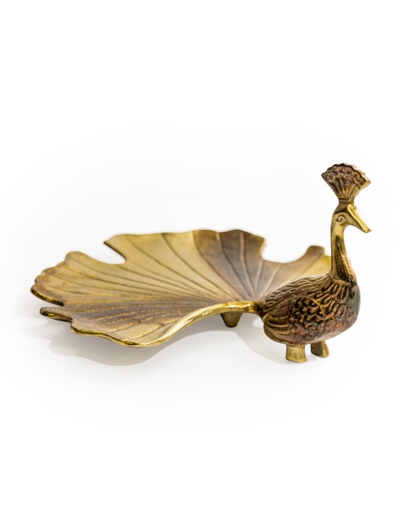 Antique Gold Peacock Trinket Dish