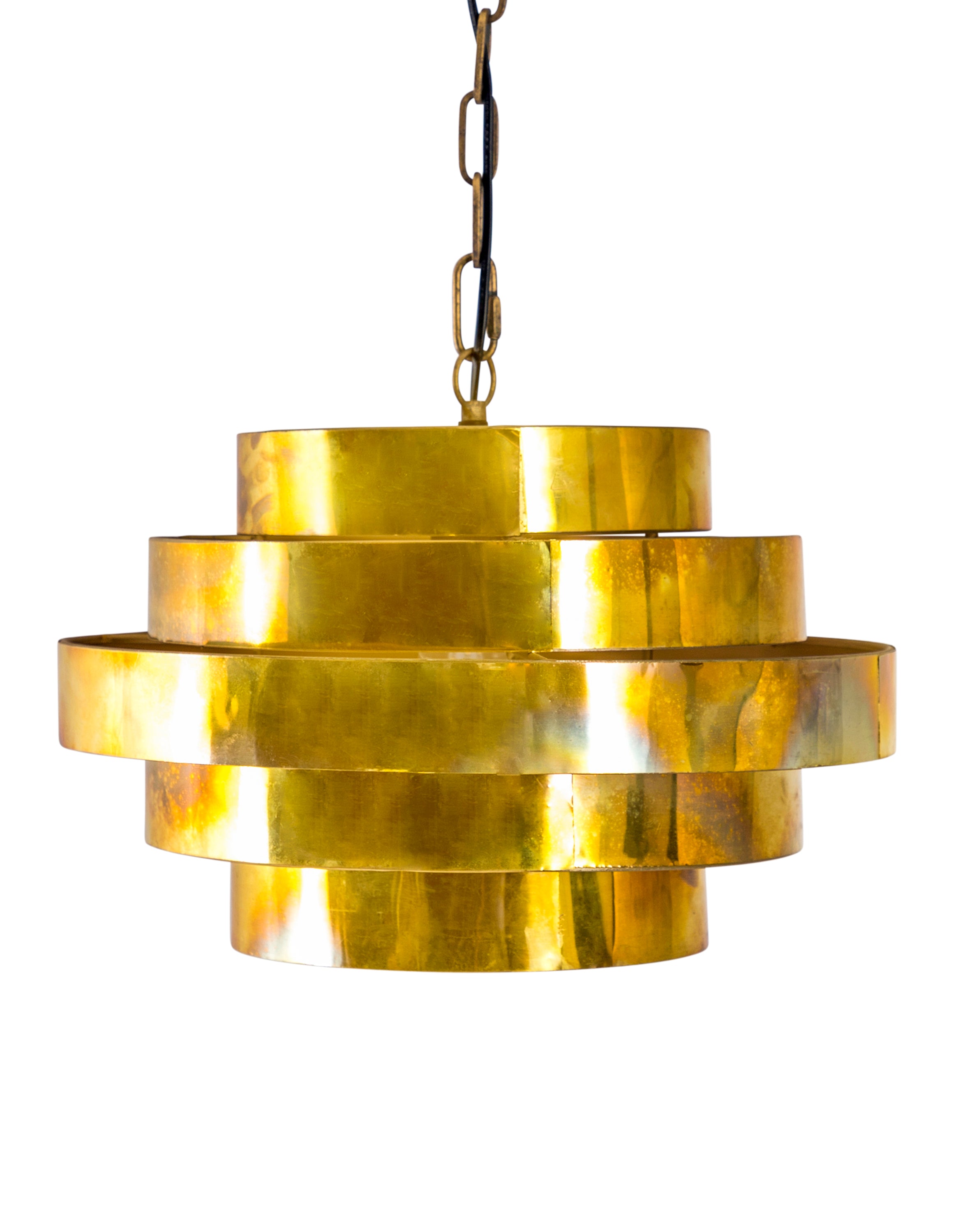 A tiered halo ceiling pendant in antique gold.