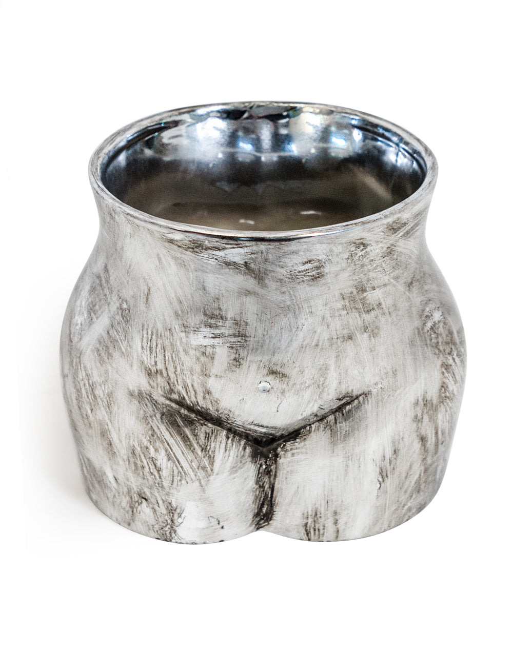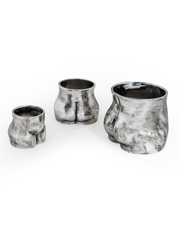 Get ready to add some quirkiness to your home decor with our Antique Silver Large Booty Flower Pot/ Storage Jar! This unique flower pot features a playful design and adds a touch of humour to any room. Perfect for holding flowers or standing alone as a statement piece.
