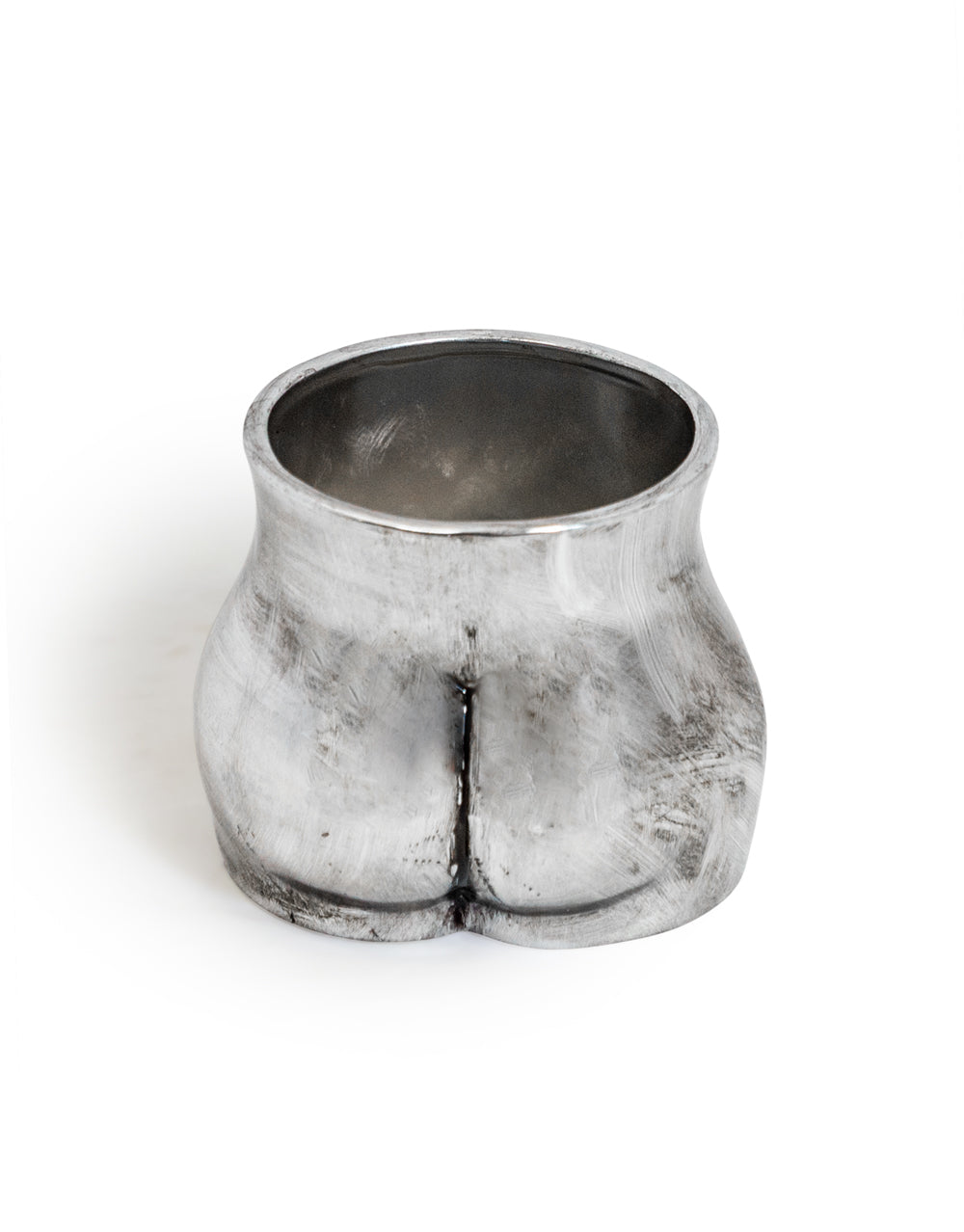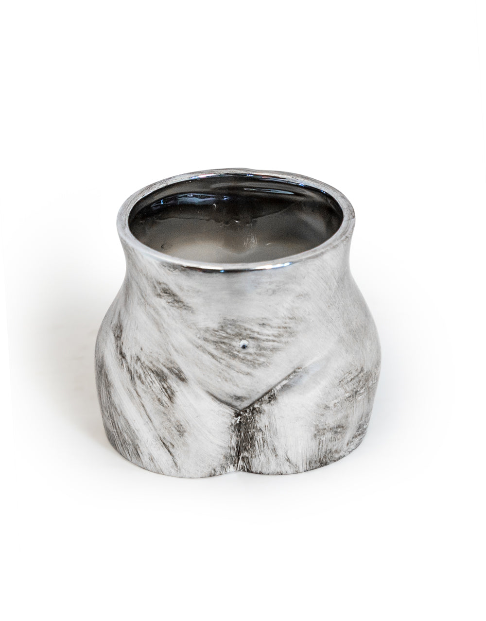 Get ready to add some quirkiness to your home decor with our Antique Silver Medium Booty Flower Pot/ Storage Jar! This unique flower pot features a playful design and adds a touch of humour to any room. Perfect for holding flowers or standing alone as a statement piece.