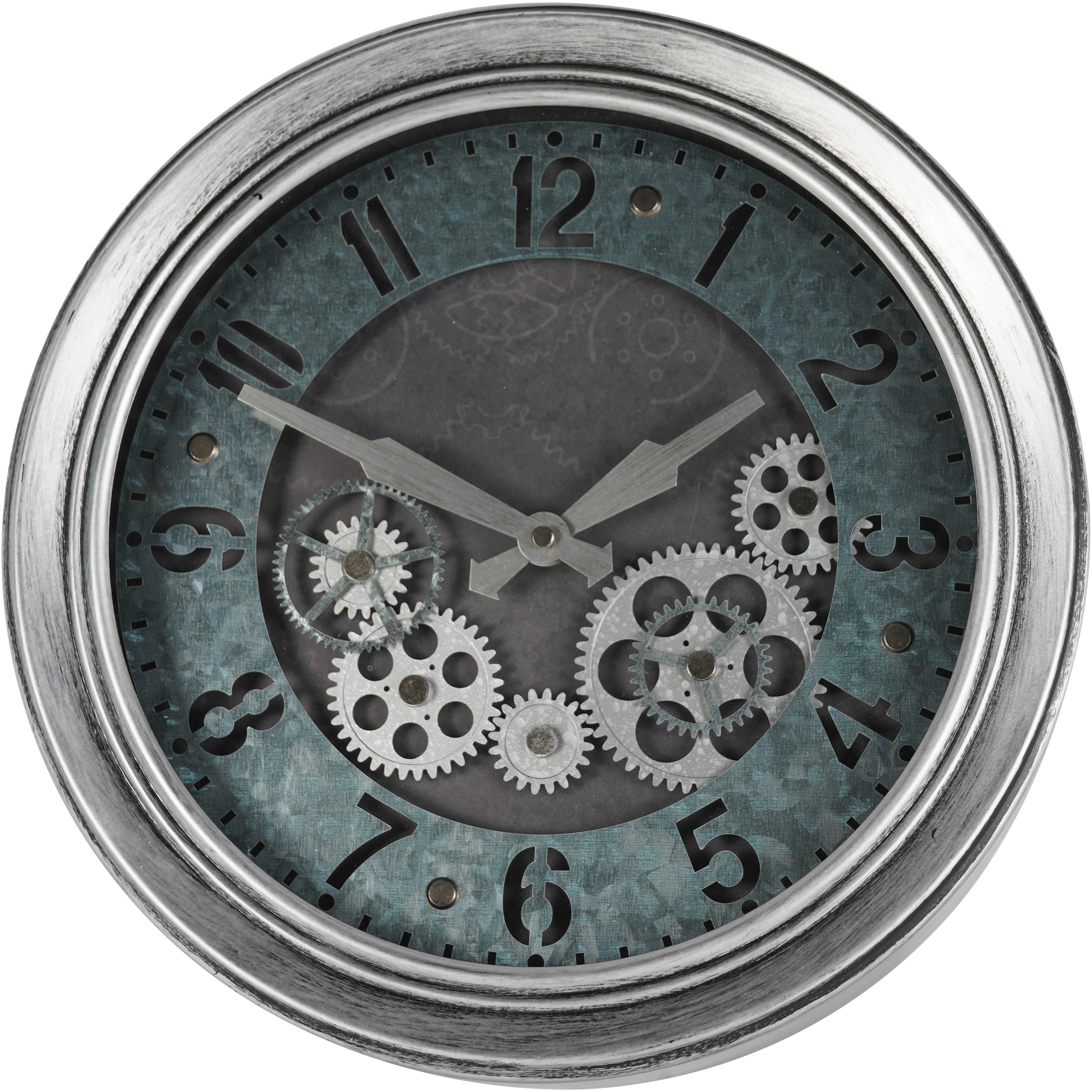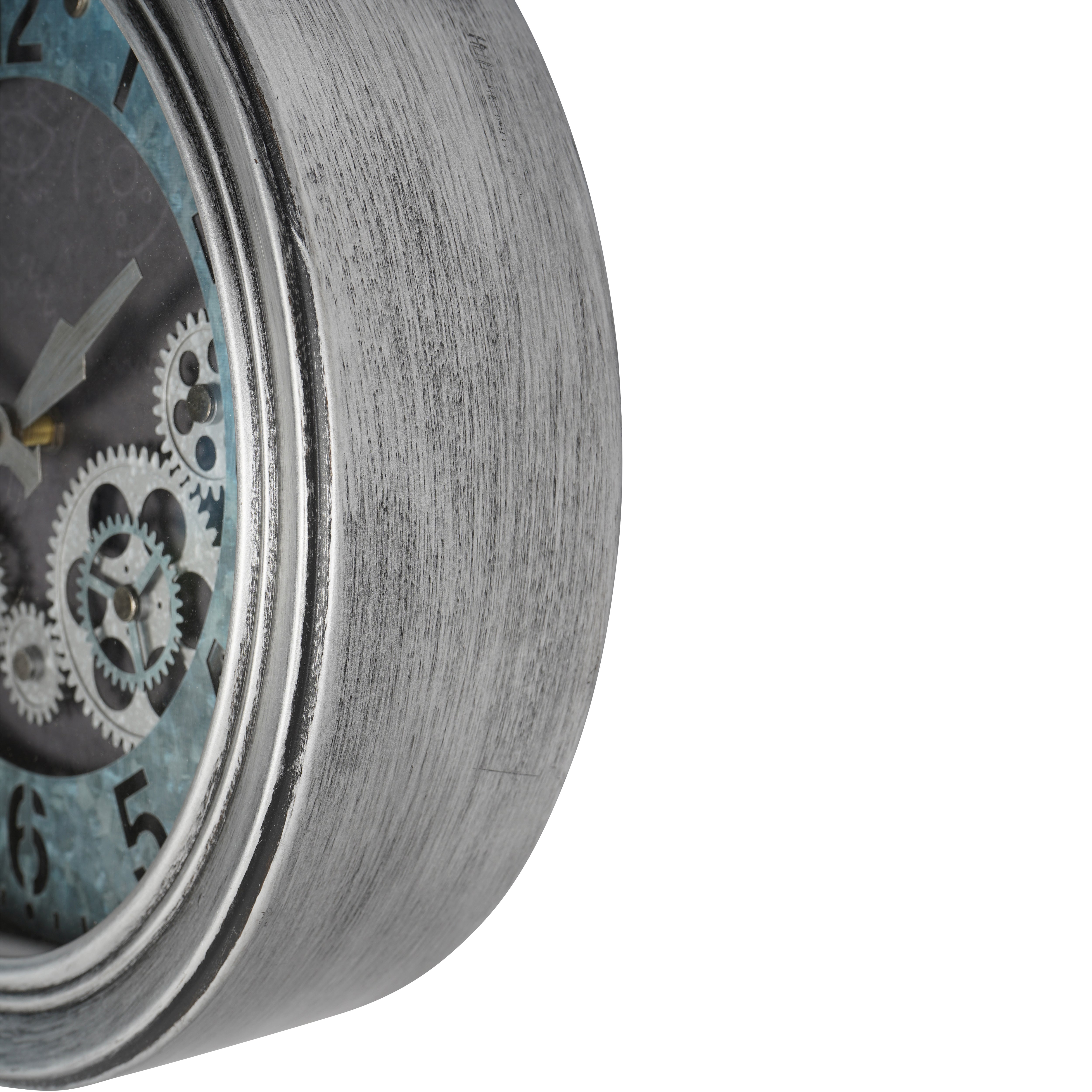 Experience the perfect combination of elegance and innovation with our Antique Silver Palladium Mini Dials Clock. The antique silver frame, intricate cutouts, and bold hands bring a touch of sophistication to your décor. With five moving cogs, this clock adds visual appeal and nostalgia. Requires 1 AA battery for the clock and 1 x LR20 battery for the gears (not included).