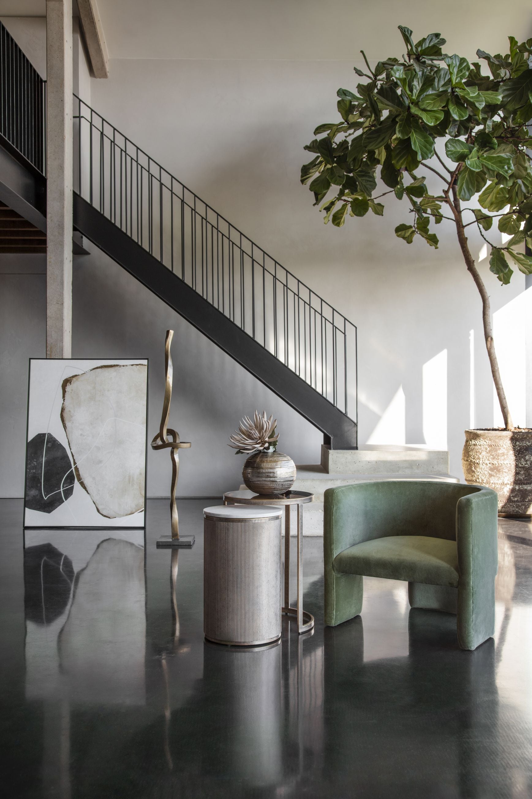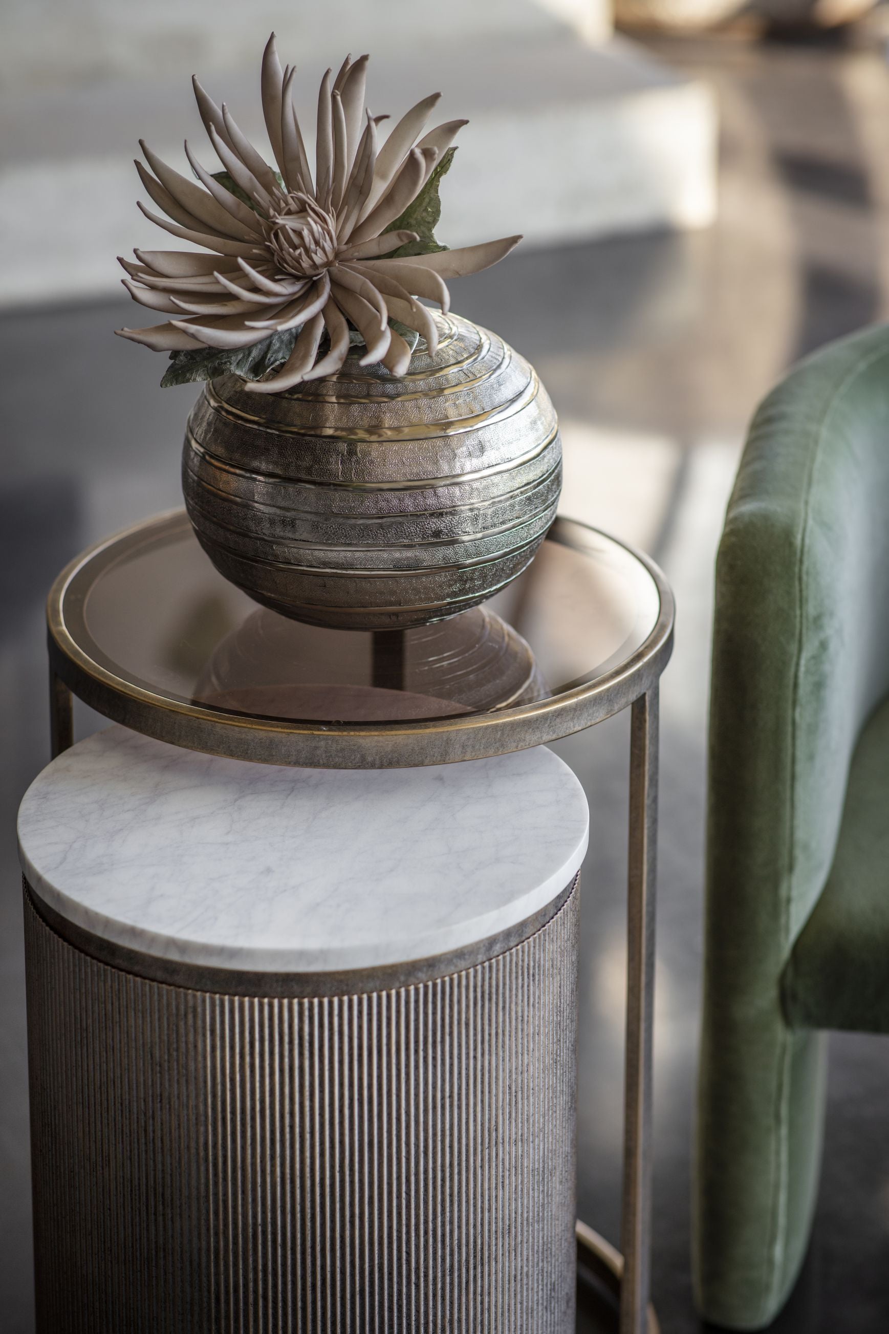 The Belgravia Side Table Set offers contemporary style with a space-saving design. The aged gold finish and tinted glass add a touch of timeless charm. Each table is unique with a beautiful variance in glass colour. Crafted with expert production methods for a sophisticated look.