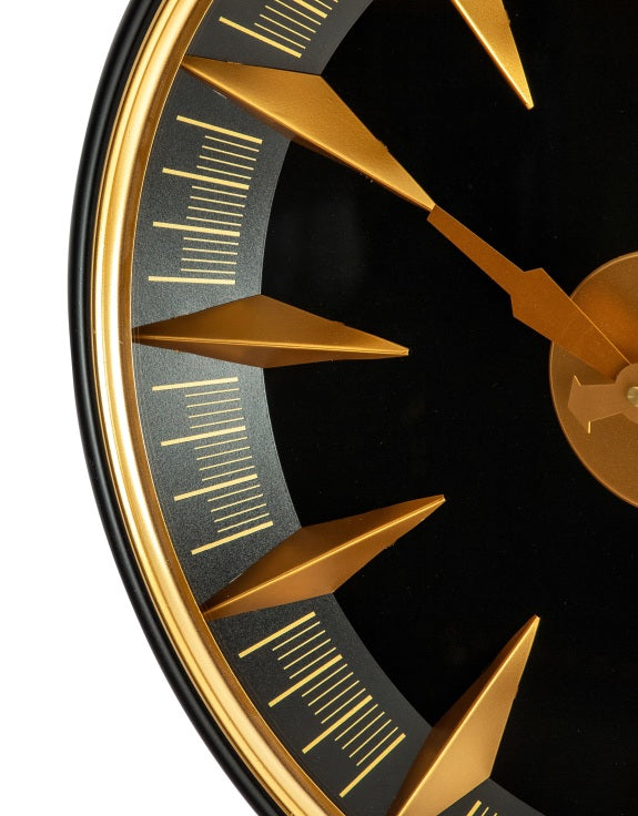 Introducing the Black & Antique Gold California Wall Clock -the ultimate in bold and daring style! With its sleek black design and antique gold accents, this clock will make a statement in any room.