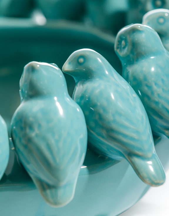 Transform your home decor with our beautifully crafted Ceramic Flock of Birds Bowl in blue. This stunning piece adds a touch of elegance and country charm to any room. Perfect for displaying fruit, decorative objects, or simply on its own as a statement piece. Bring the beauty of wildlife into your home today!