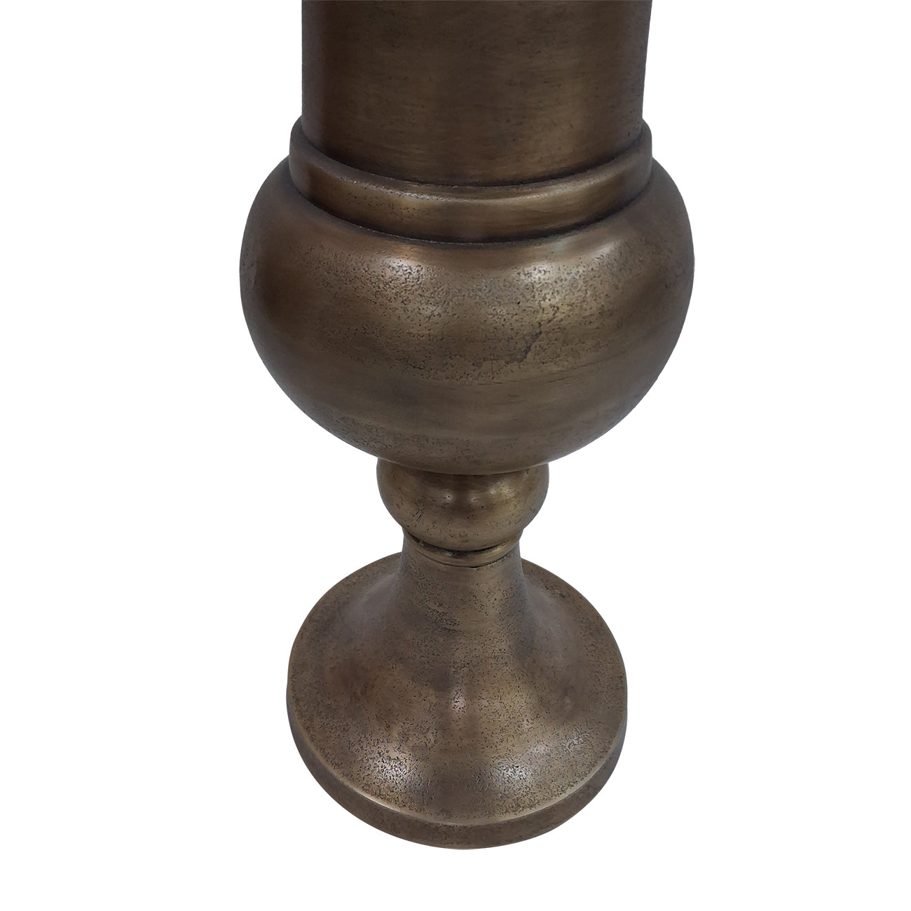 Elevate your space with the Brooklyn Antique Brass Planter, a refined take on the timeless Grecian urn. Standing 100 cm tall, its flared shape and elegant turned detailing bring classic charm with a modern edge. Made from lightweight aluminium and finished in rich antique brass, it offers a stylish display option for dried or sculptural arrangements. Perfect as a striking standalone piece or paired with the matching Brockley Plinths for extra presence. Please note, this planter is not water safe, ideal for lasting decorative impact.