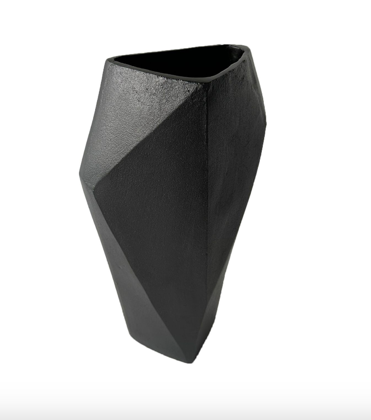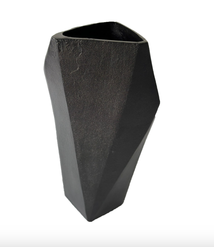 Cast Aluminium Faceted Charcoal Black Antique Vase
