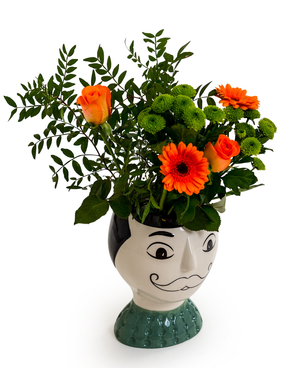 Add some personality to your space with this Ceramic Doodle Man's Face Vase with Moustache Vase. This quirky vase doubles as a fun sculpture, making it the perfect statement piece for any room. Add a touch of humour to your decor!