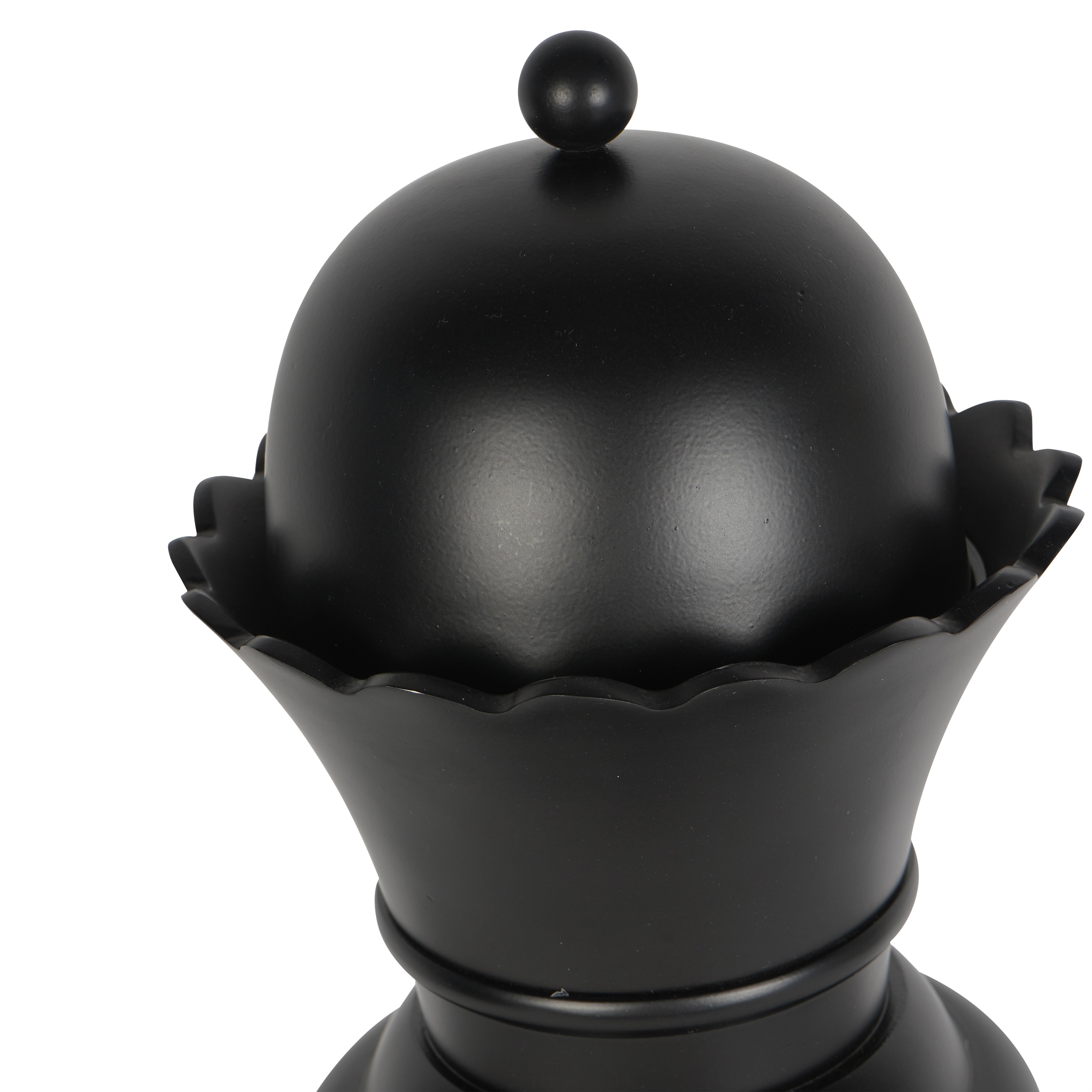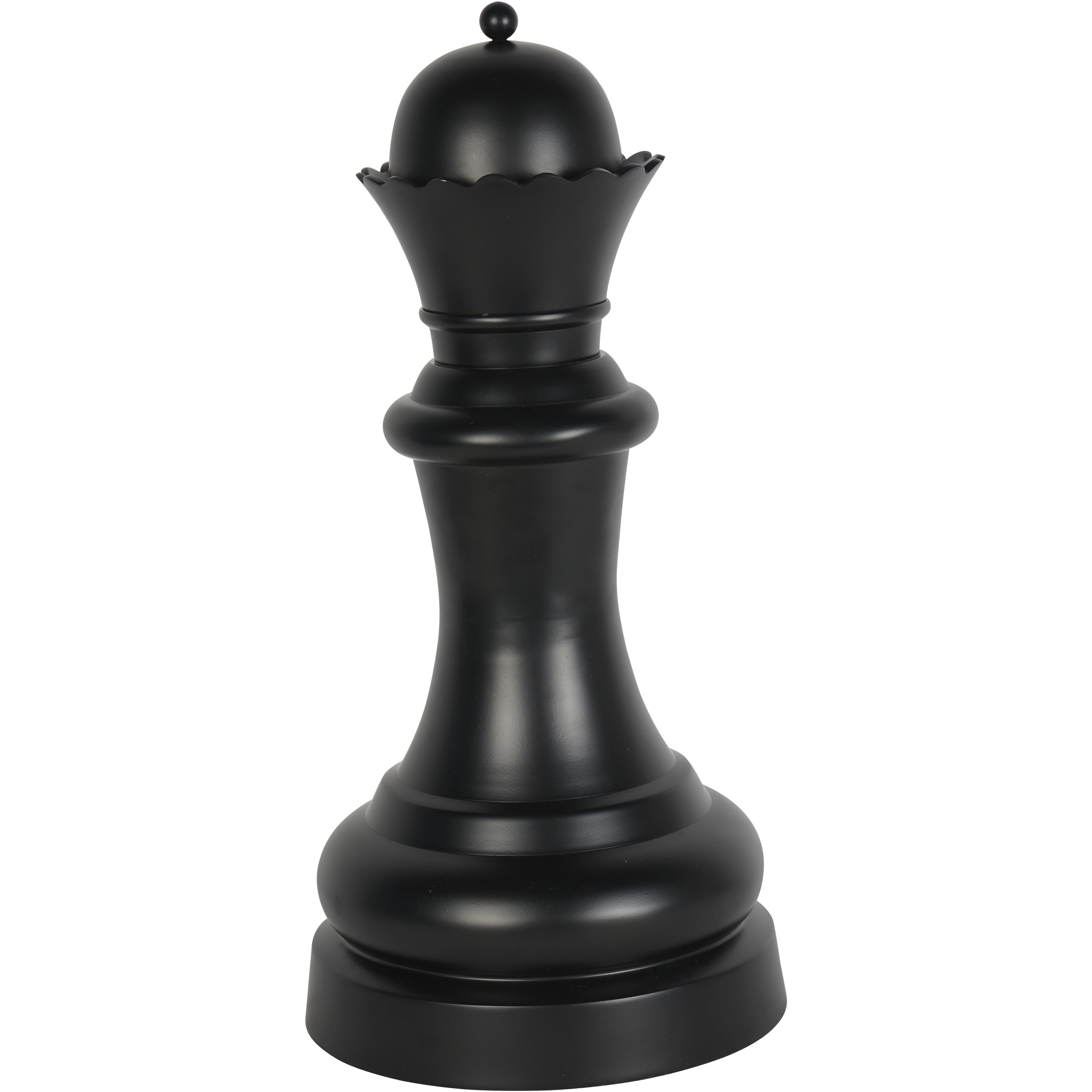 Elevate your home decor with the Decorative Queen in Black Finish. Made from sturdy powder coated aluminium, this 60cm chess piece exudes regal charm. Its removable top lid offers hidden storage while the sleek black finish adds a touch of sophistication. Perfect as a standalone statement or paired with our Decorative King, this piece is sure to captivate with its timeless elegance.