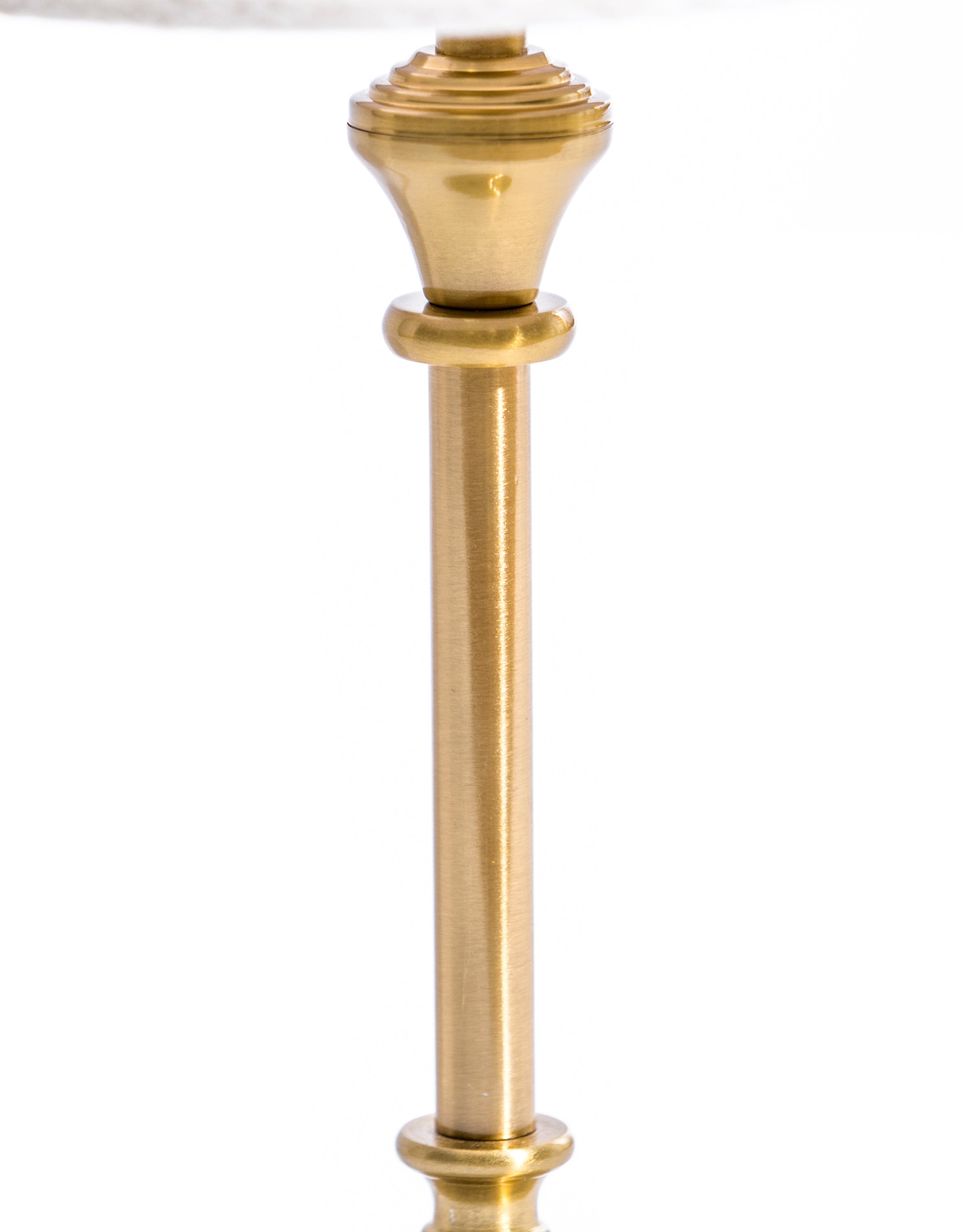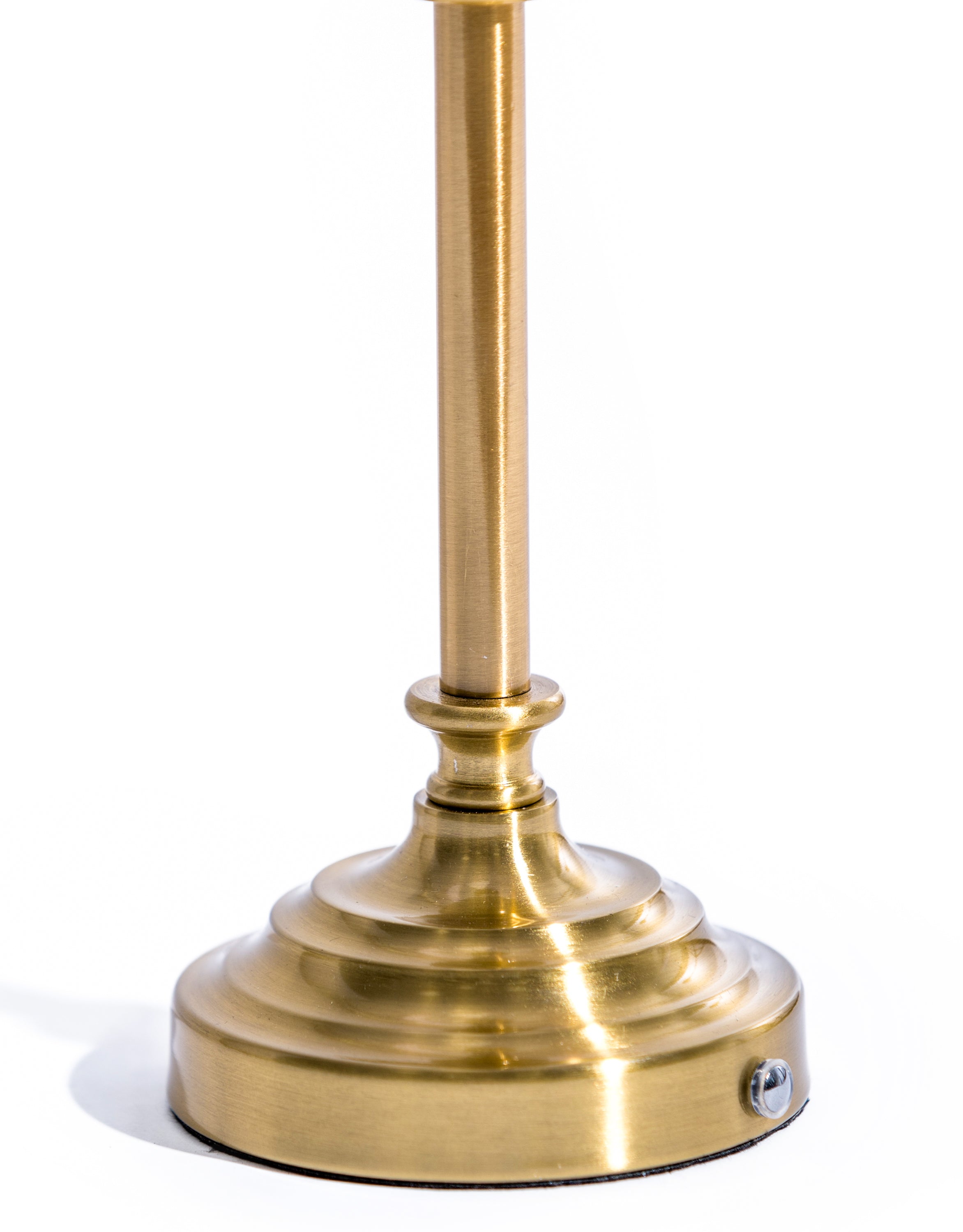 A classic brass cordless rechargeable table lamp with an oatmeal shade. The lamp should take approx. 6 hours to fully charge on a 3.1A plug. They will last up to 8 hours with the light starting to dim after 3.5 hours. Bulb included but USB-C cable not included.