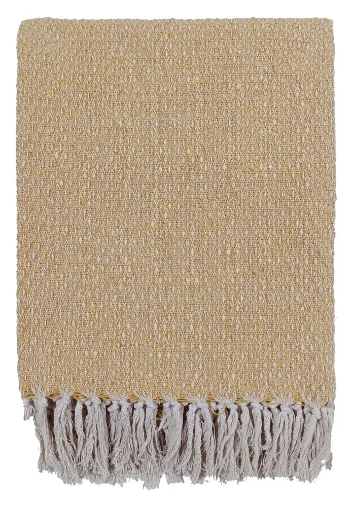 Transform your living space with our Darling Mustard Throw! Made with recycled yarn and featuring a playful dot design, this taupe throw adds a touch of charm and sustainability to your home. Made from 65% cotton.