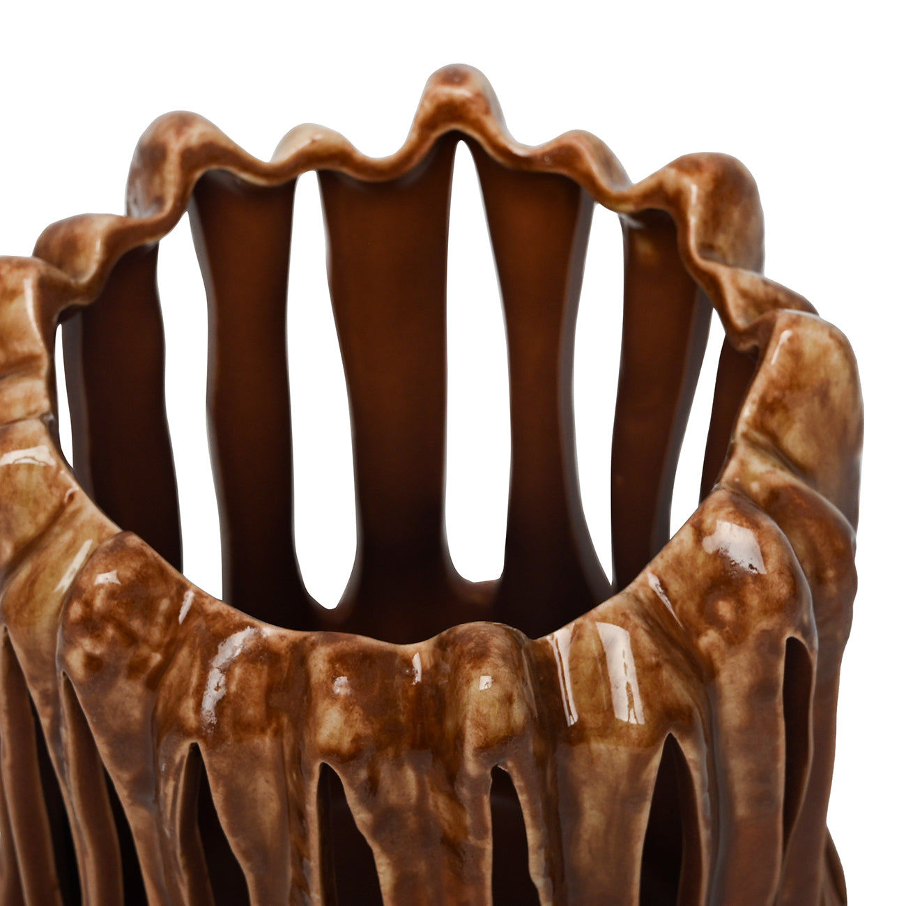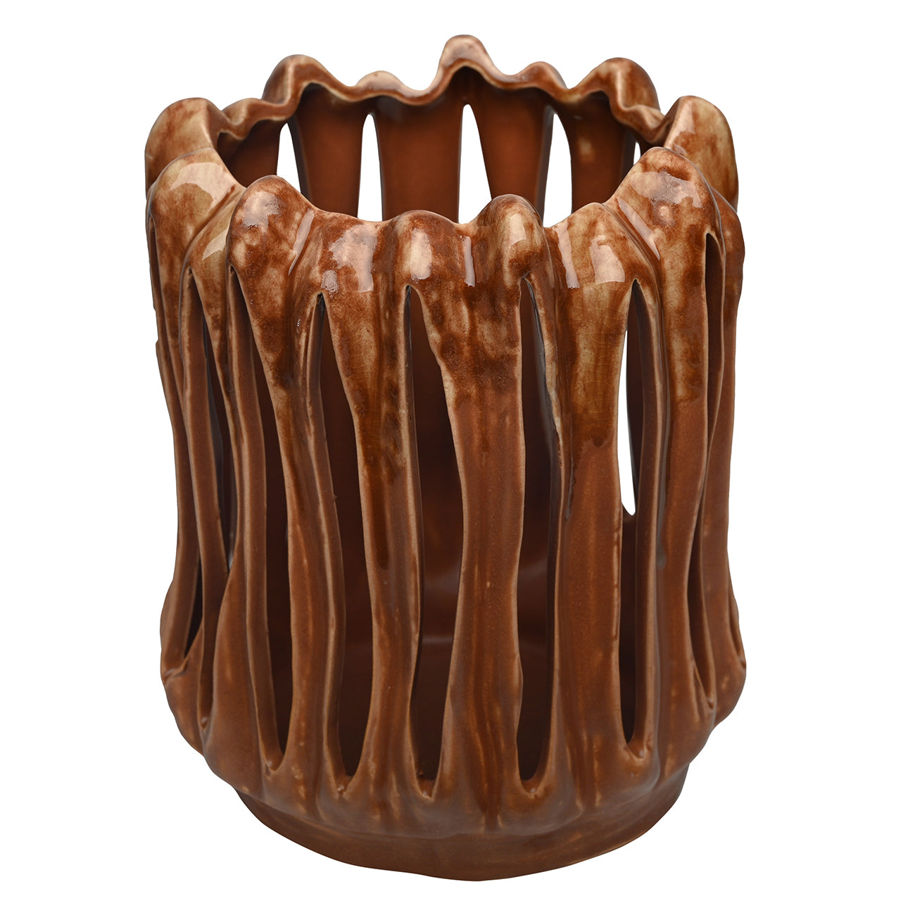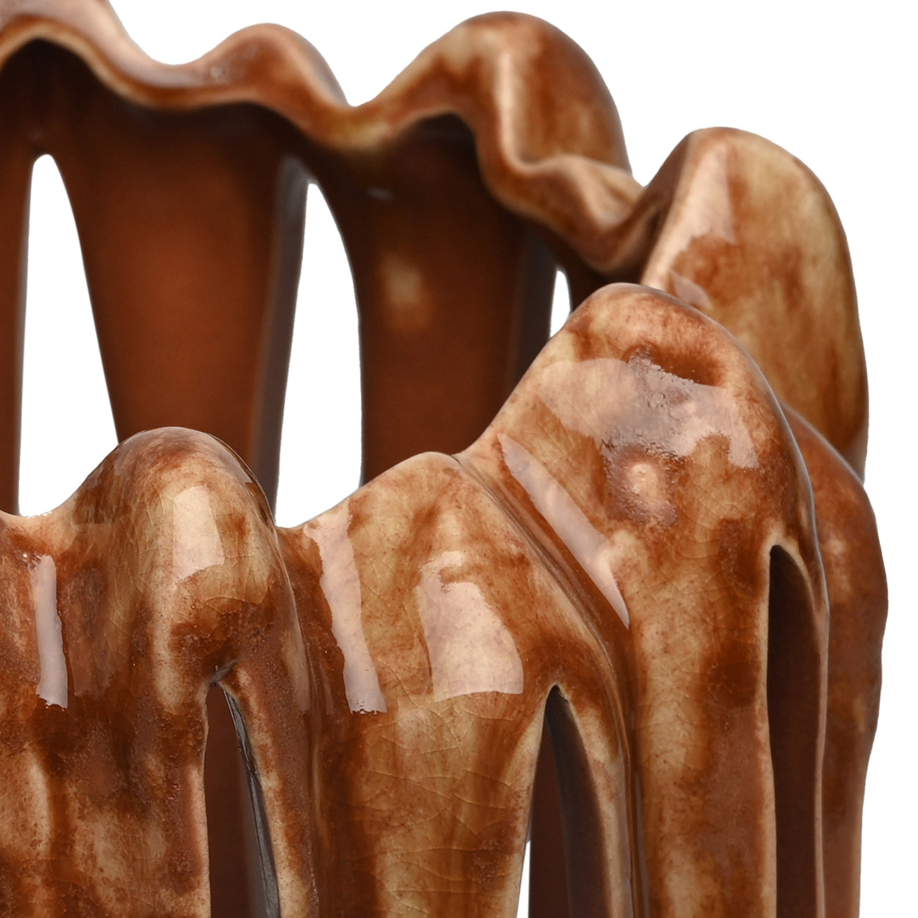 Discover the Denbury Reactive Glaze Candleholder—a masterpiece of artisanal craftsmanship that transforms any space into a gallery of refined taste. Hand-thrown in stoneware, this sculptural piece features an intricate openwork design that captures light beautifully, creating mesmerising shadows that shift throughout the day. The signature reactive glaze delivers a stunning contrast: a lustrous, glossy finish at the crown that gracefully transitions to soft matte tones below, highlighting every carefully considered contour. Whether displayed as a standalone statement or integrated into your existing décor, this tactile treasure brings warmth, sophistication, and understated elegance to curated interiors. A conversation-starting accent that celebrates the beauty of handmade design.