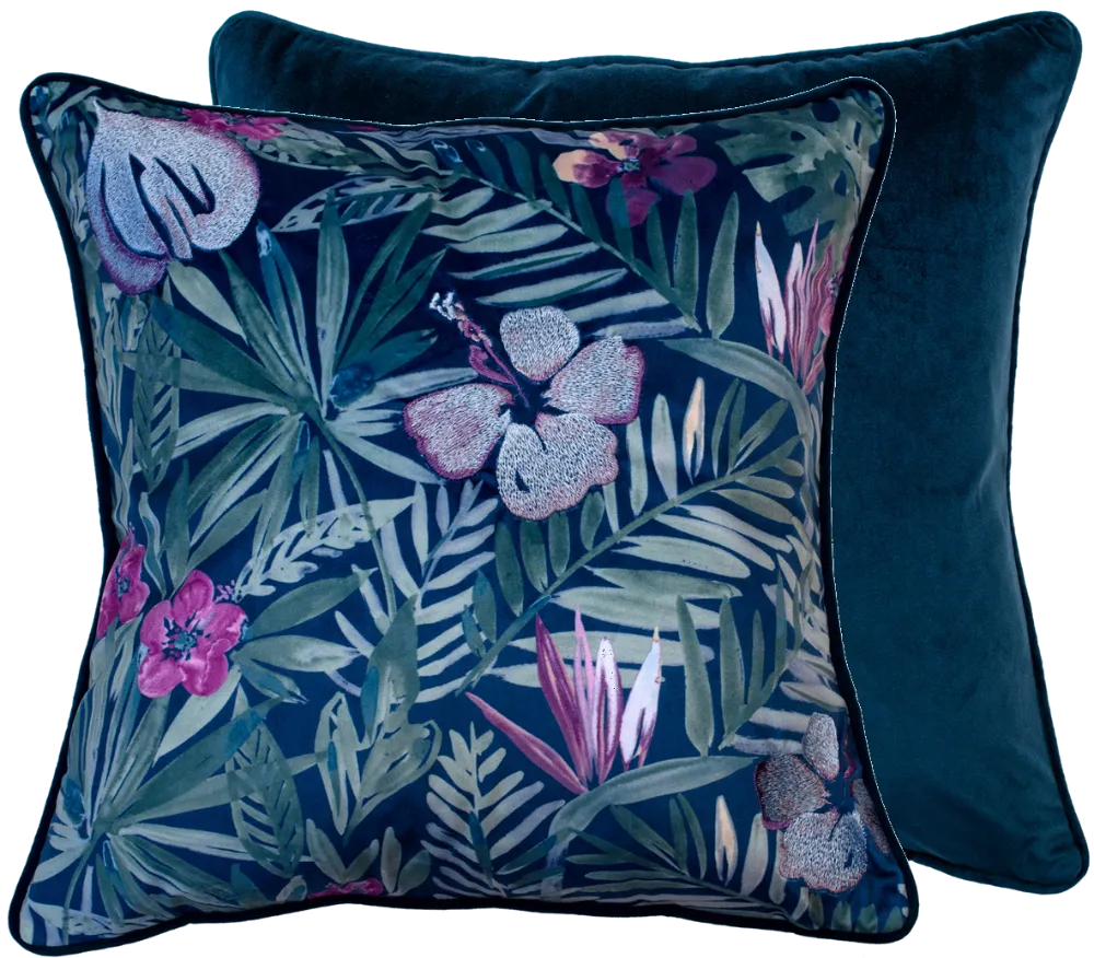 Indulge in the luxurious comfort of our Emilia Cushion. Featuring a stunning tropical floral print in pinks and blues, this cushion adds a touch of elegance to any room.