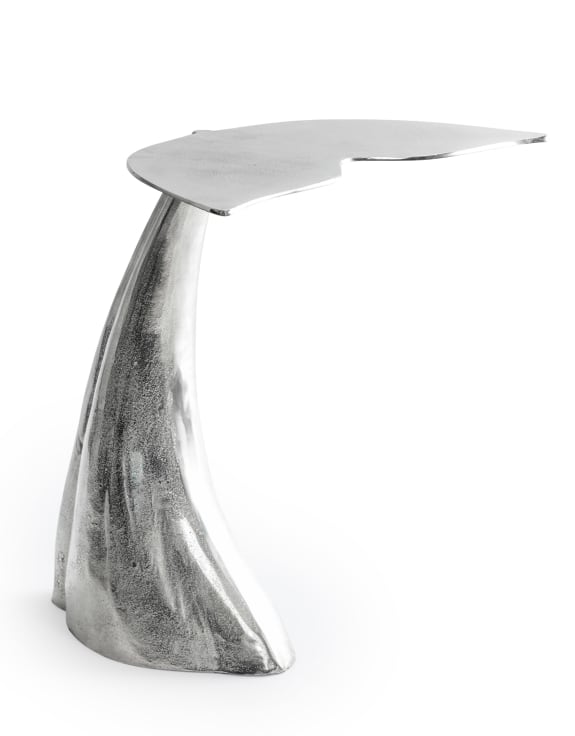 Elevate your space with our Raw Nickel Whale Tail Side Table! Crafted with raw nickel, this unique piece features a whale tail design that adds a touch of charm to any room. Perfect for displaying your favourite items or as a functional side table.
