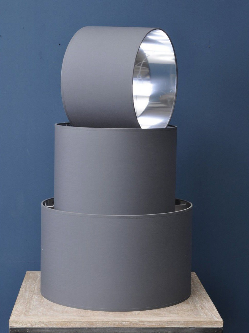 Luxury drum shade with hand-rolled edges and a contrasting metallic lining. These drum shades have been made to perfectly complement our range of table and floor lamps and come with a removable plastic ring to fit both E14 and E27 bulb fitting widths.
