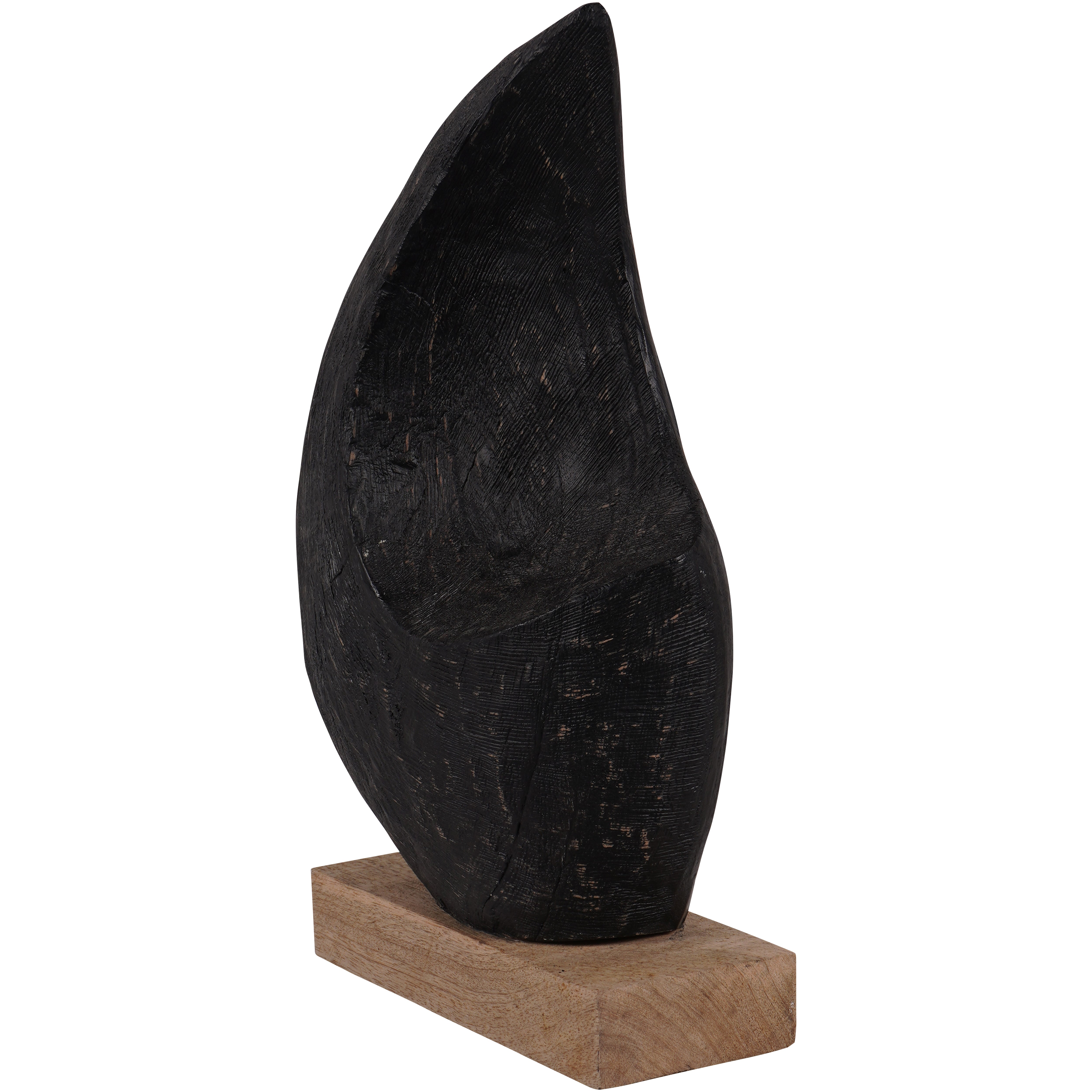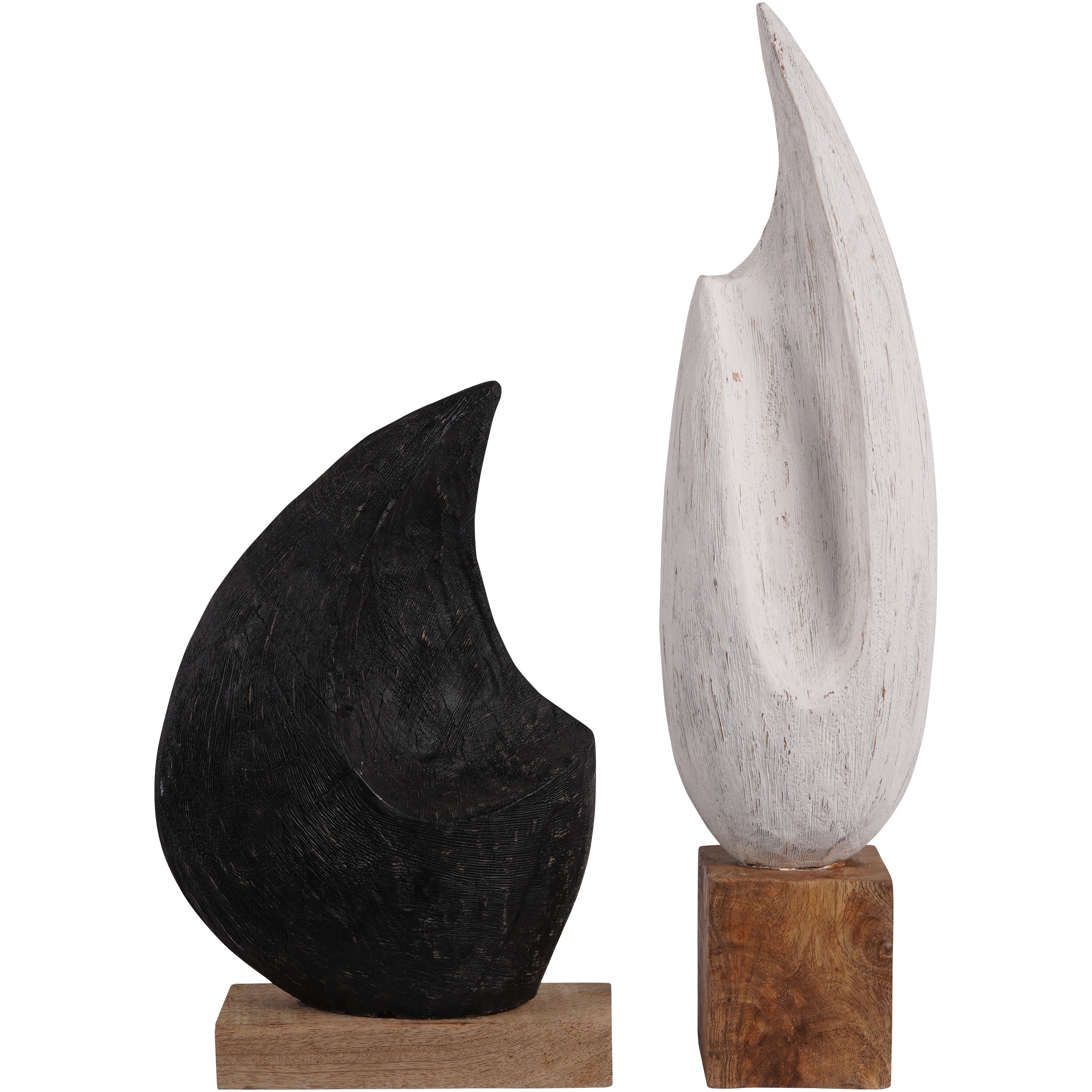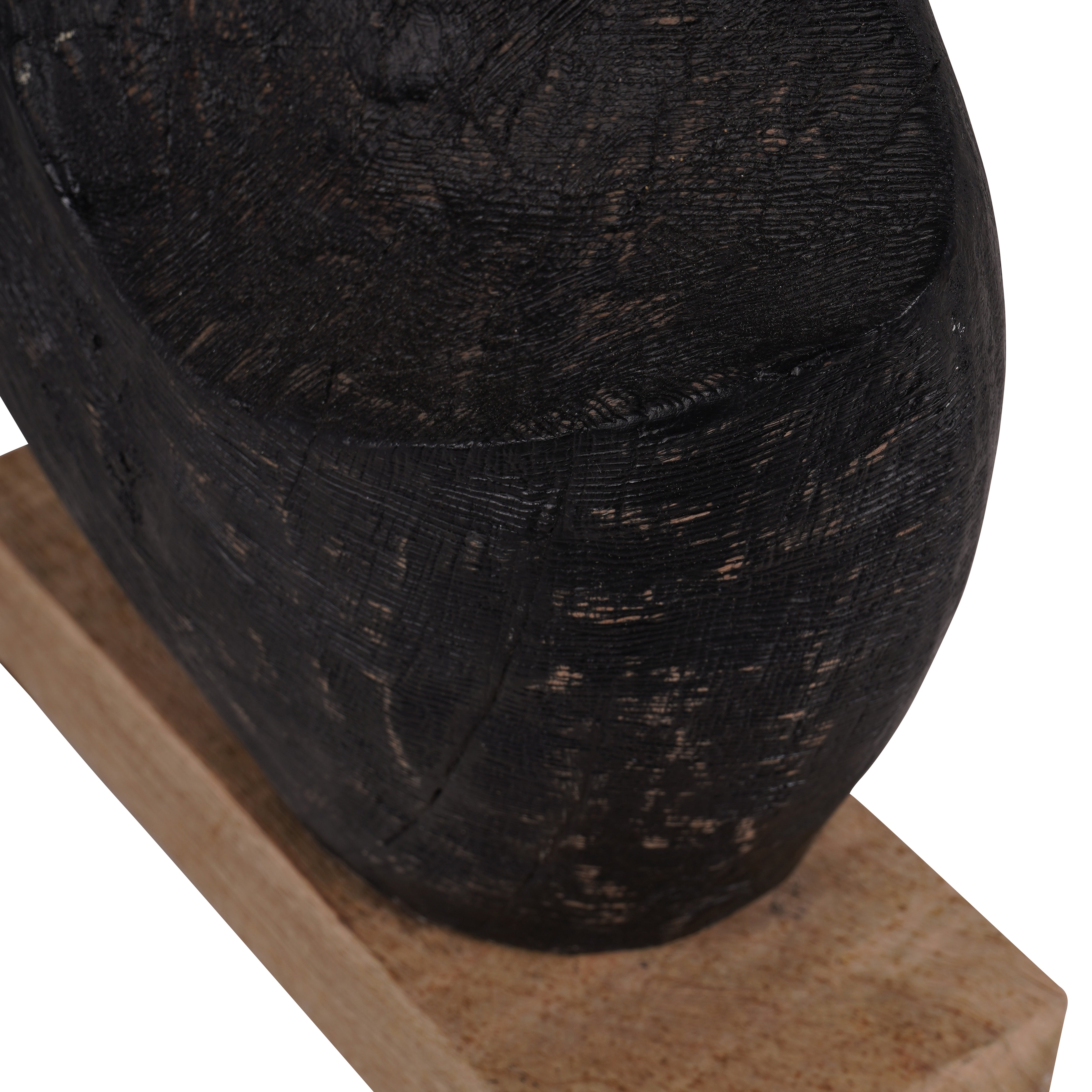 Experience the beauty of abstract art with our Hand Carved Black Solid Wood Sculpture. Precision-crafted with intricate details, this sculpture features an elegant black and white design that adds a touch of contemporary style to any space. Resting on a solid wooden base, it makes for a striking center piece or accent piece, blending antique charm with modern allure.