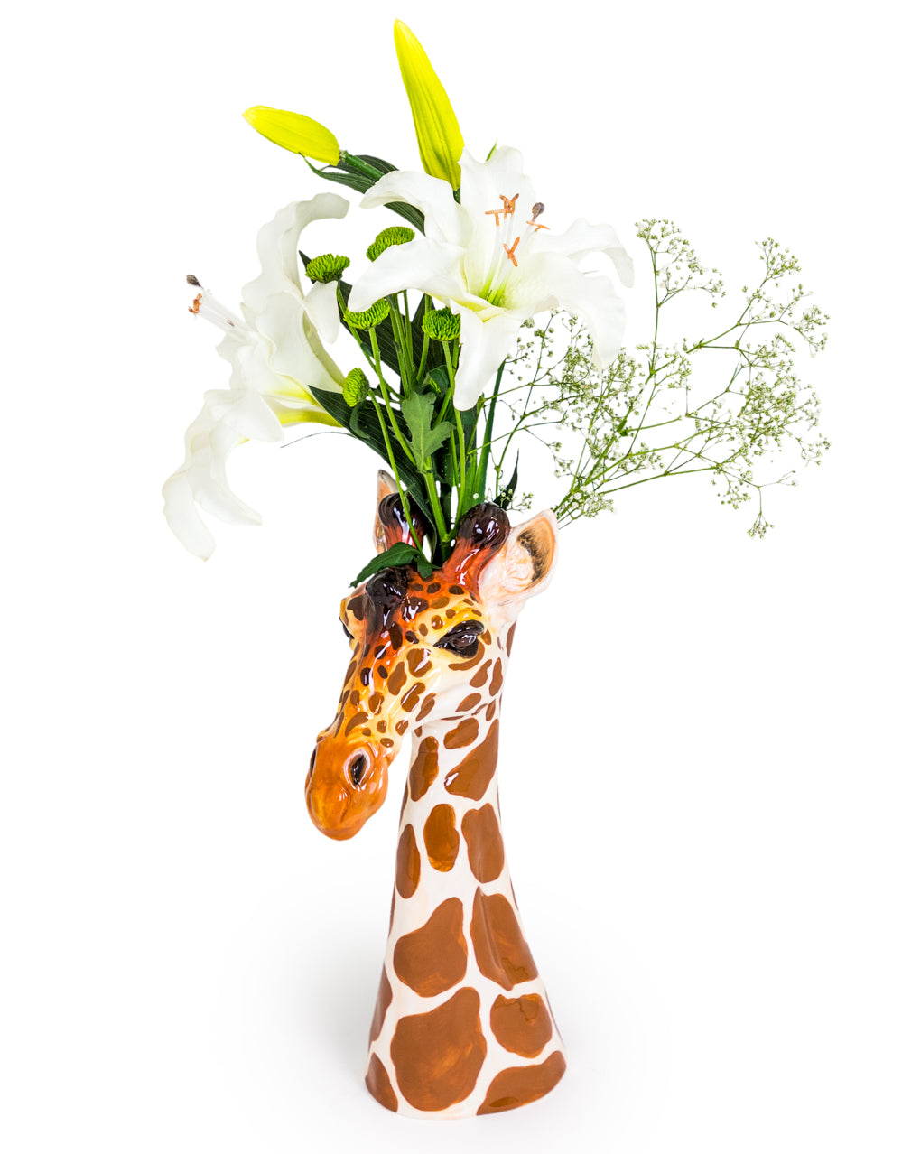 Add a playful touch to your home with our Hand Painted Ceramic Giraffe Head Vase! This unique vase is hand painted with intricate details and will showcase your flowers in style. Perfect for gifting or as a statement piece in your decor.