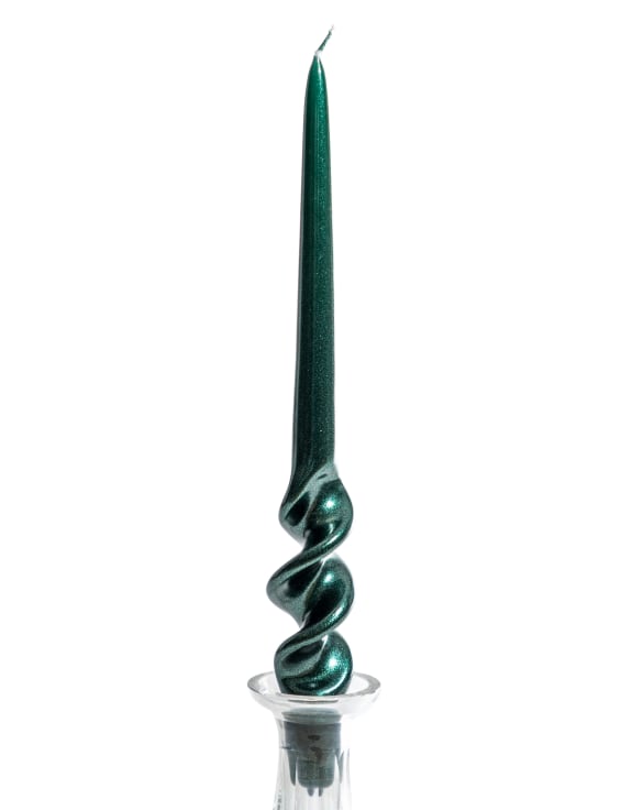 A set of 8 bottle green gloss 29cm hand turned taper candles.