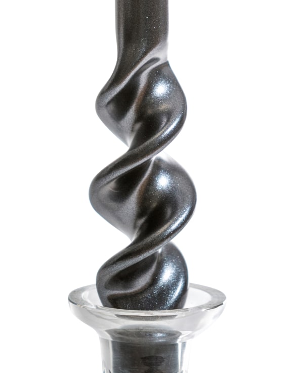 A set of 8 metallic black 29cm hand turned taper candles.
