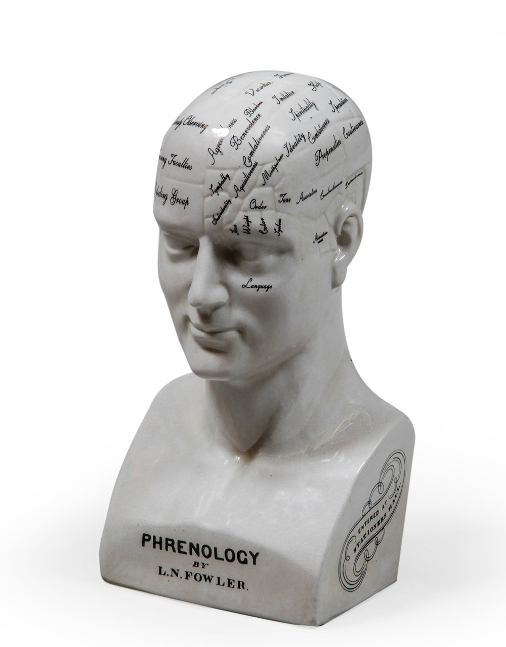 This Large Antiqued Ceramic Phrenology Head is a captivating decor piece that will add character to any room. Perfect for history buffs or those with an eye for unique decor.