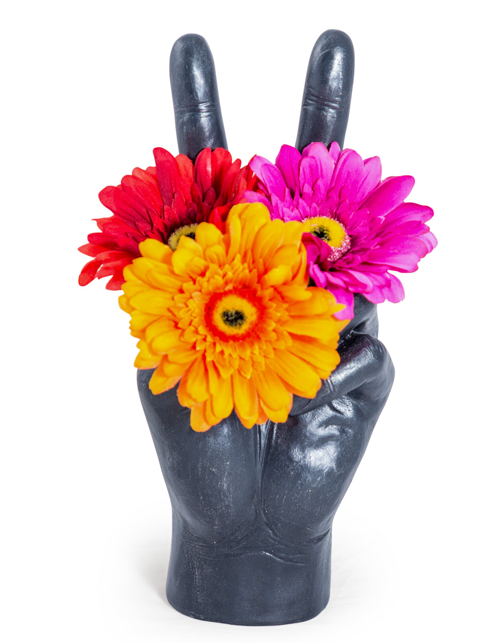 Add a touch of hippy peace to your home decor with our Large Black 'Peace' Hand Ornament. This quirky piece is sure to be a conversation starter and will bring some playful personality to any room. Perfect for any music lover or free spirit.