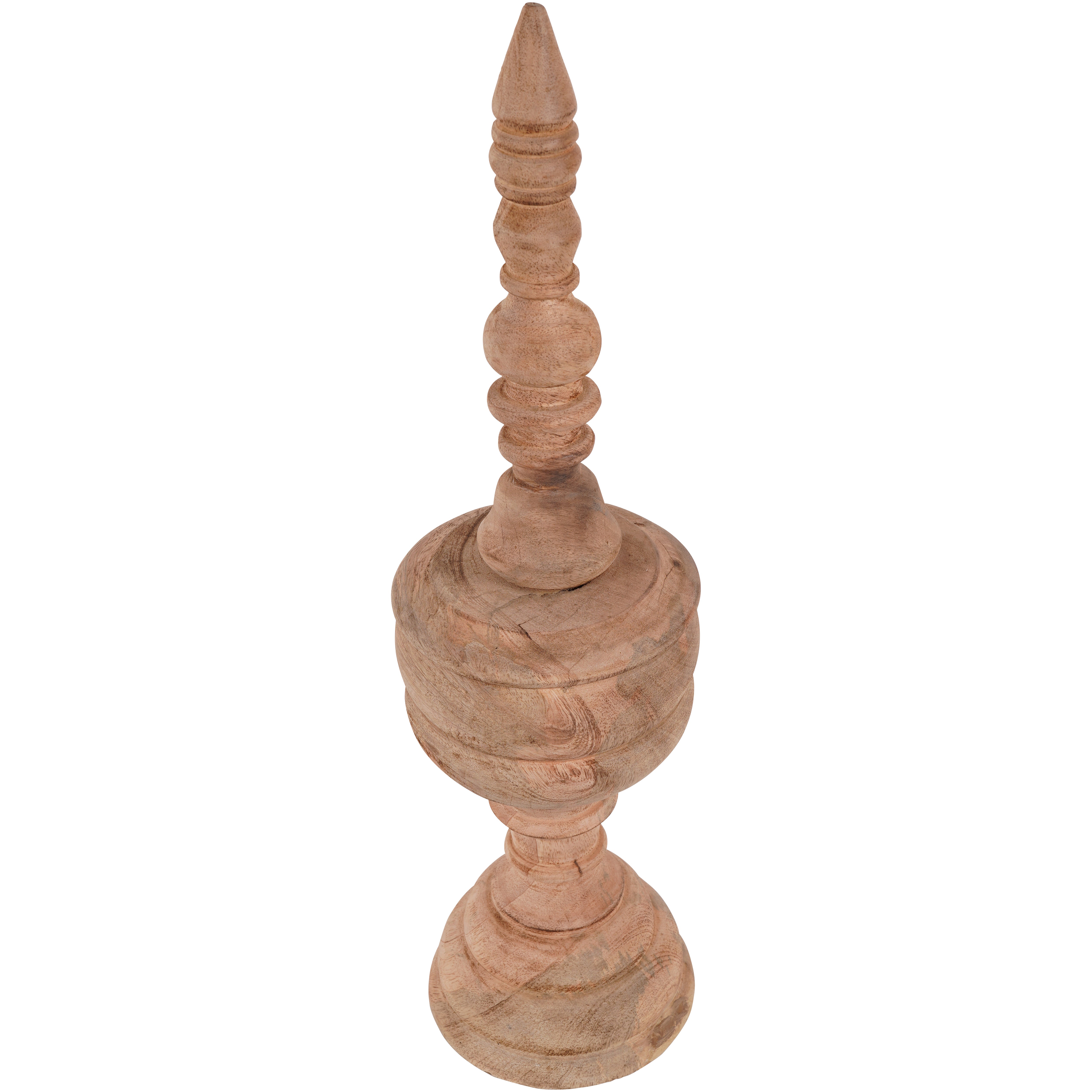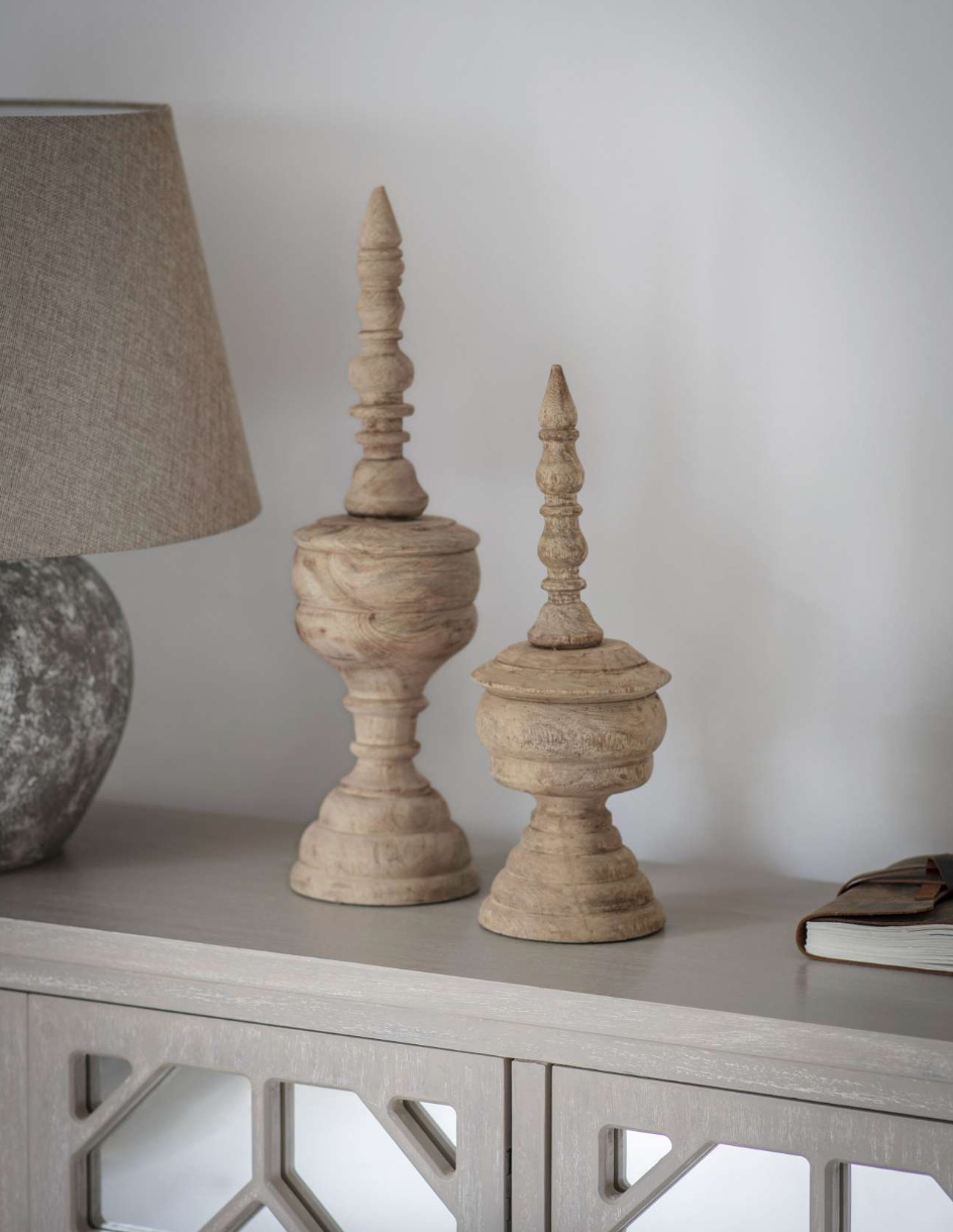 Experience the beauty and artistry of our Large Finial Hand Carved Wooden Sculpture. Painstakingly crafted with intricate detailing and precision, this timeless piece showcases the mastery of hand-carved wood. Choose from 2 sizes to effortlessly elevate your decor with sophistication and artistic expression.