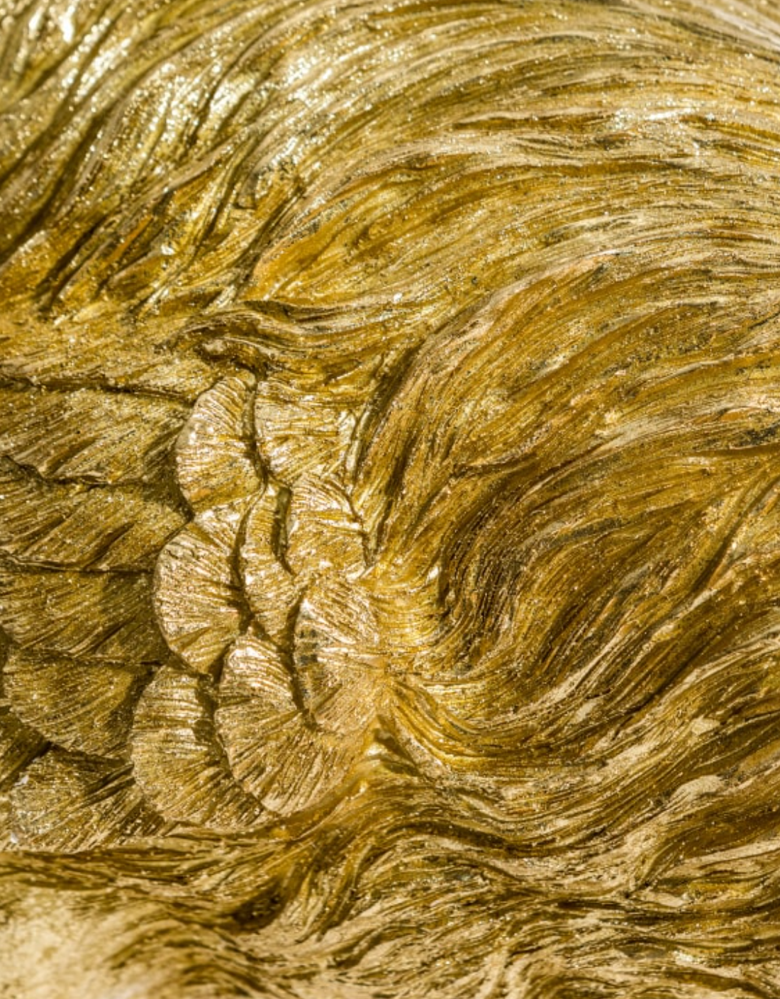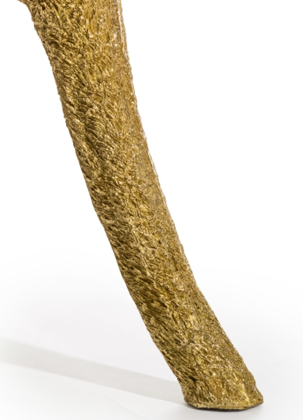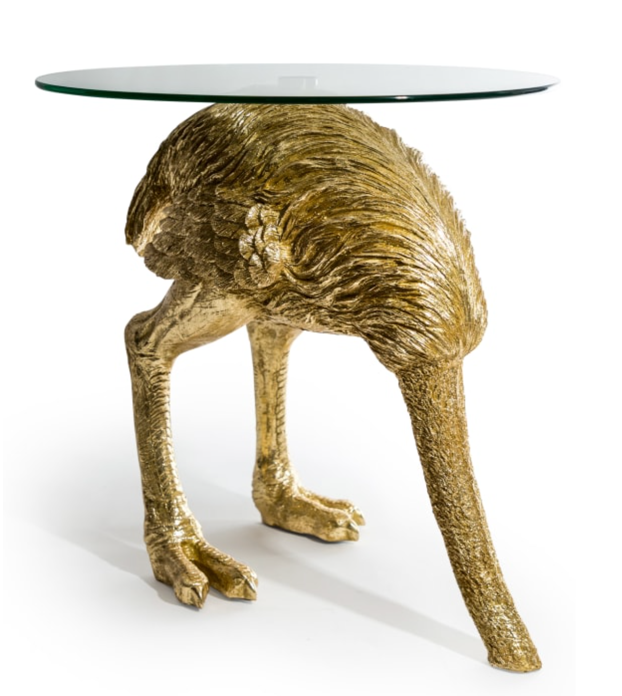 Large Gold "Head-Buried" Ostrich Side Table w/ Glass Top