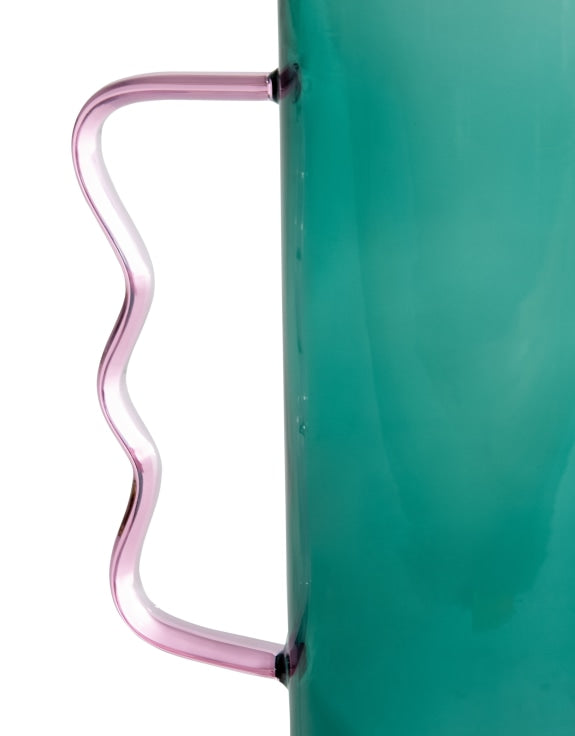 Introducing our Large Green Glass Jug with Wave Pink Handle, a fusion of art and functionality. Crafted from premium glass, this jug is perfect for serving refreshing beverages in style. The unique wave pink handle adds a touch of luxury, making it an elegant addition to any table setting.