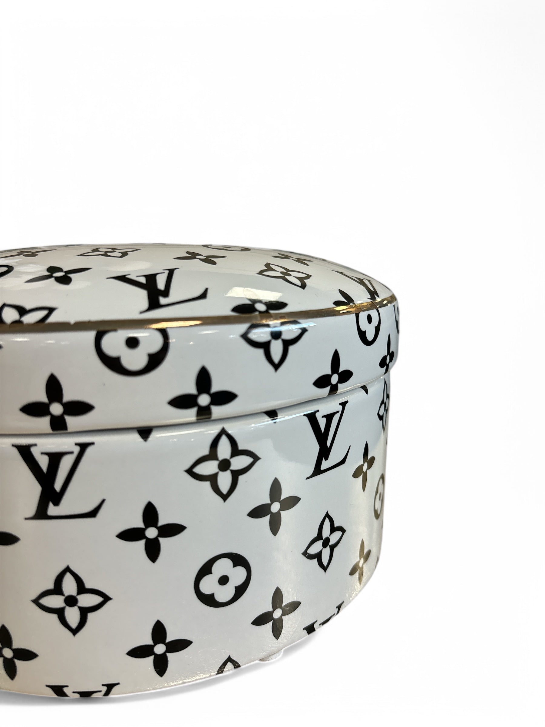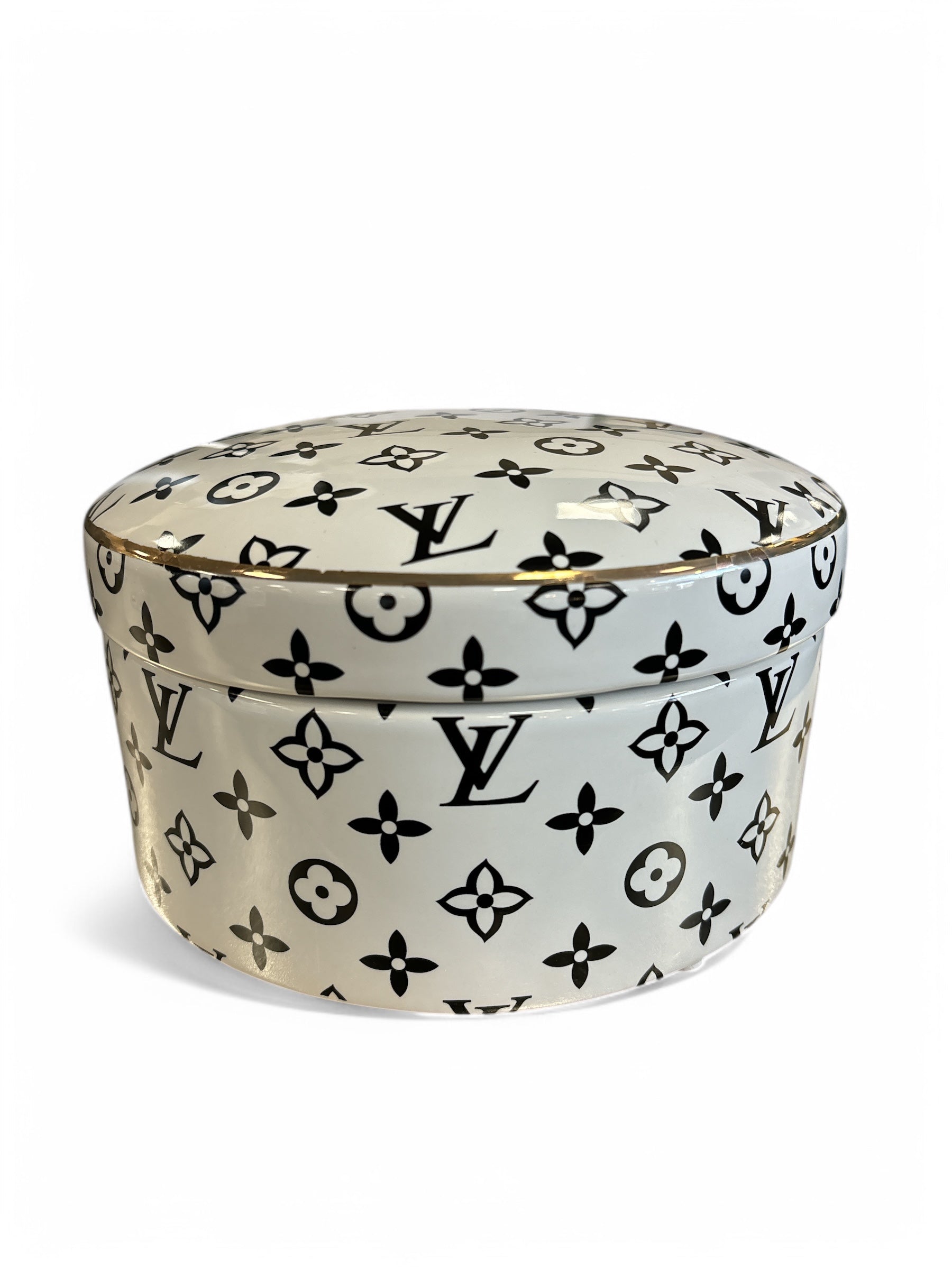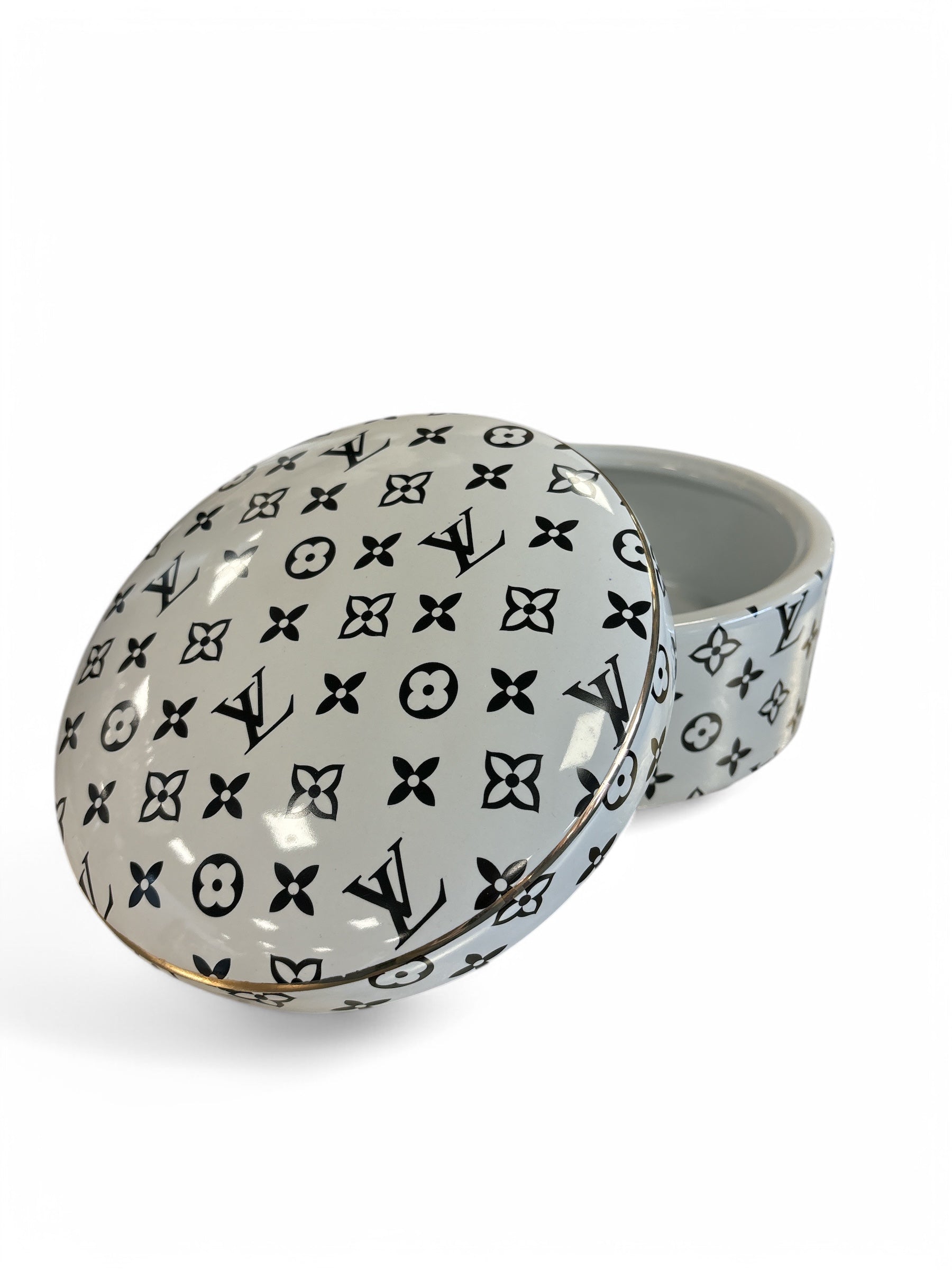 Elevate your home decor with our Large LV Designer Inspired Trinket Dish. This elegantly designed storage dish features a classic Designer Inspired logo print and a lid, making it perfect for storing your favourite treasures or displaying as a decorative statement. Durable and luxurious, this dish adds a touch of sophistication to any space.