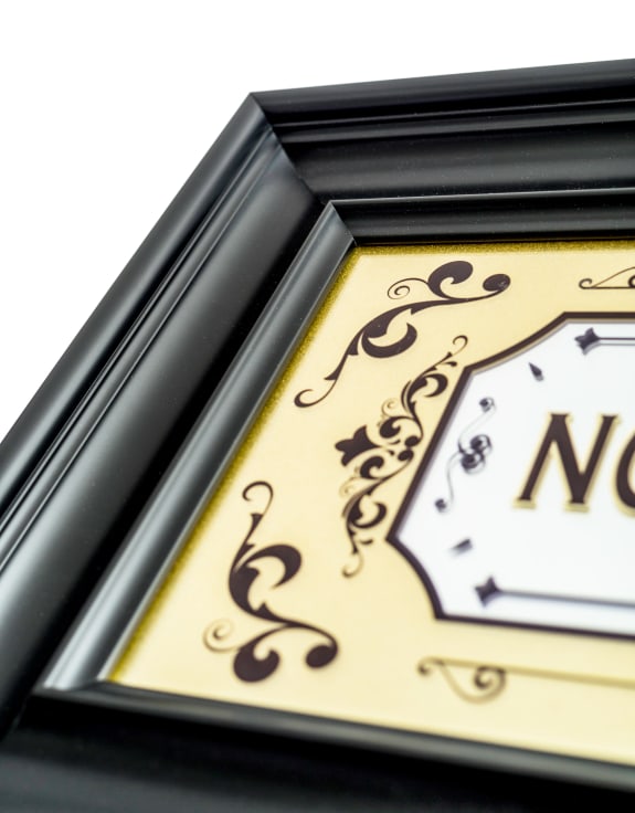 Transform your space with our Large Mirrored 'Nobody Gets Out Sober' Wall Sign. With a sleek black frame and classic gold mirror, this statement piece brings a touch of playfulness to any room. Reflect your sense of humour and style with this one-of-a-kind sign.