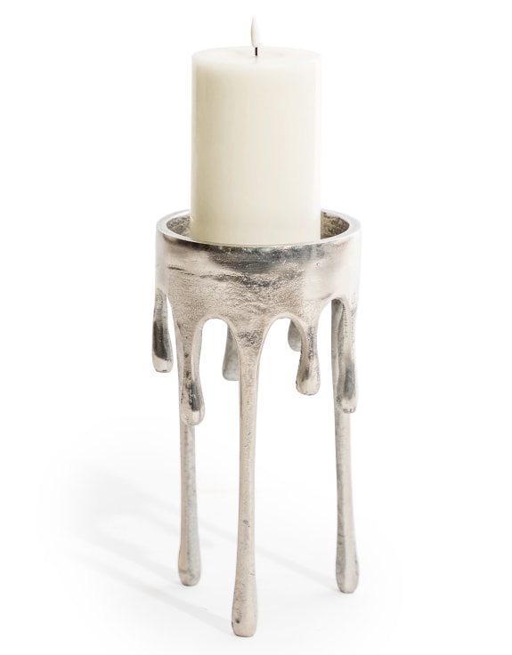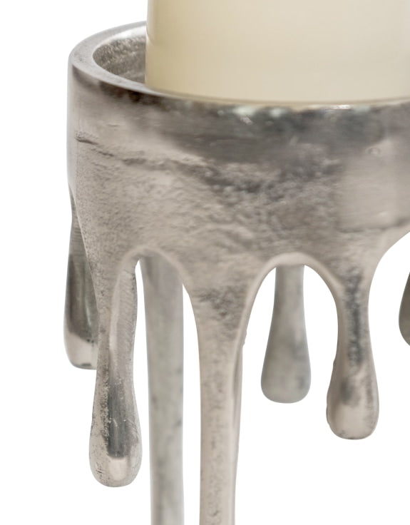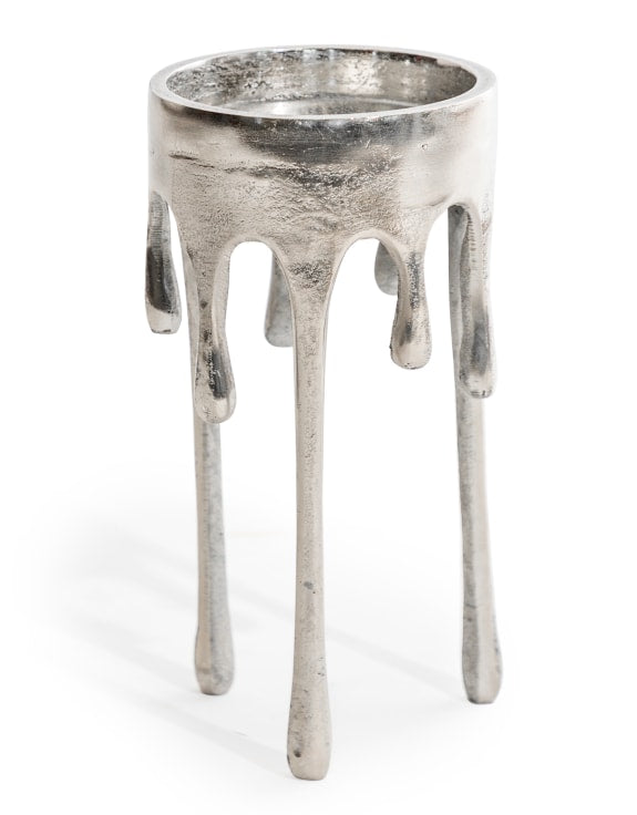 Enhance your home decor with our Large Raw Nickel 'Dali' Drip Candle Holder. Crafted with elegant design and intricate details, this candle holder is also available in a smaller size and silver for versatility. Complete the look with our matching side table and coffee table. Elevate your space with style.