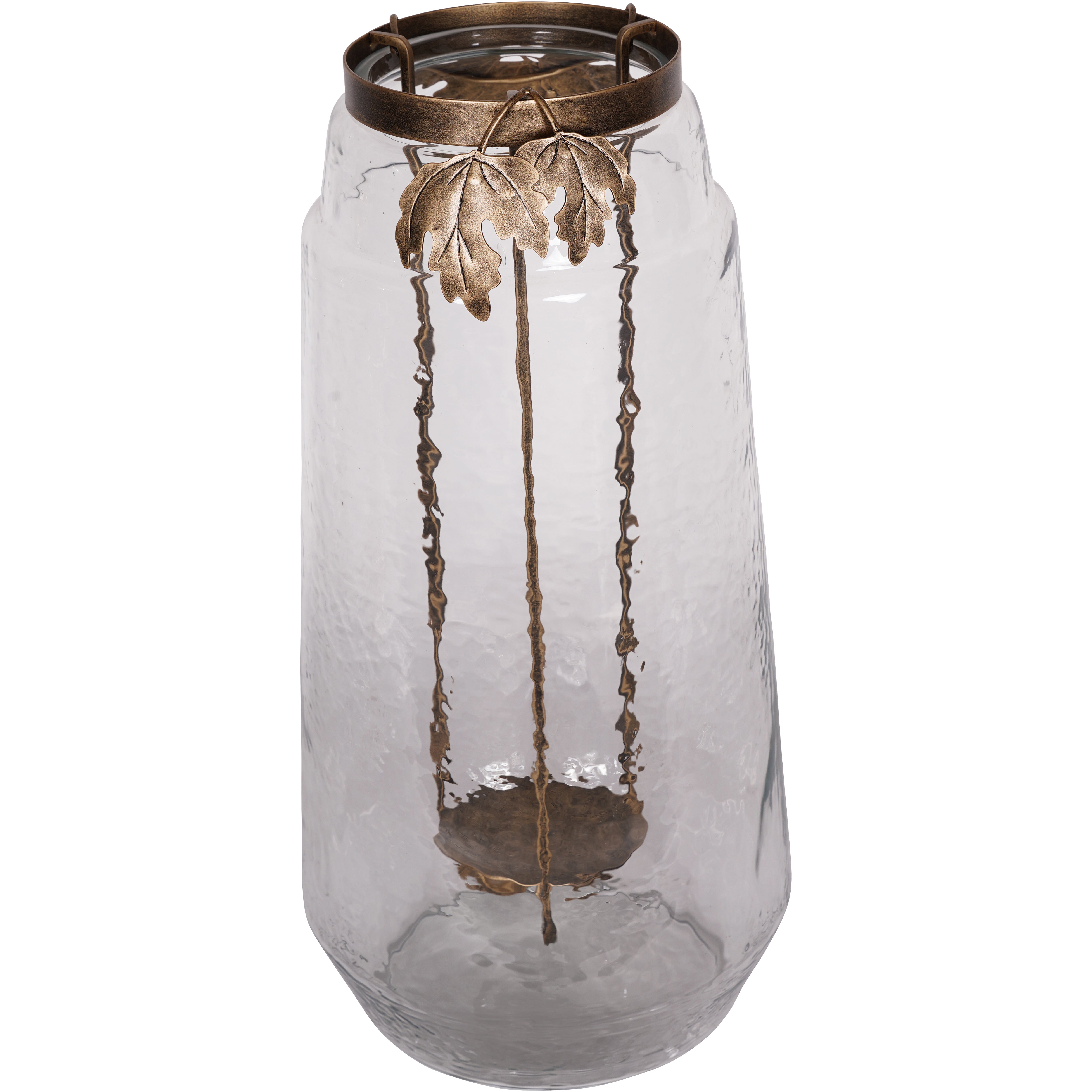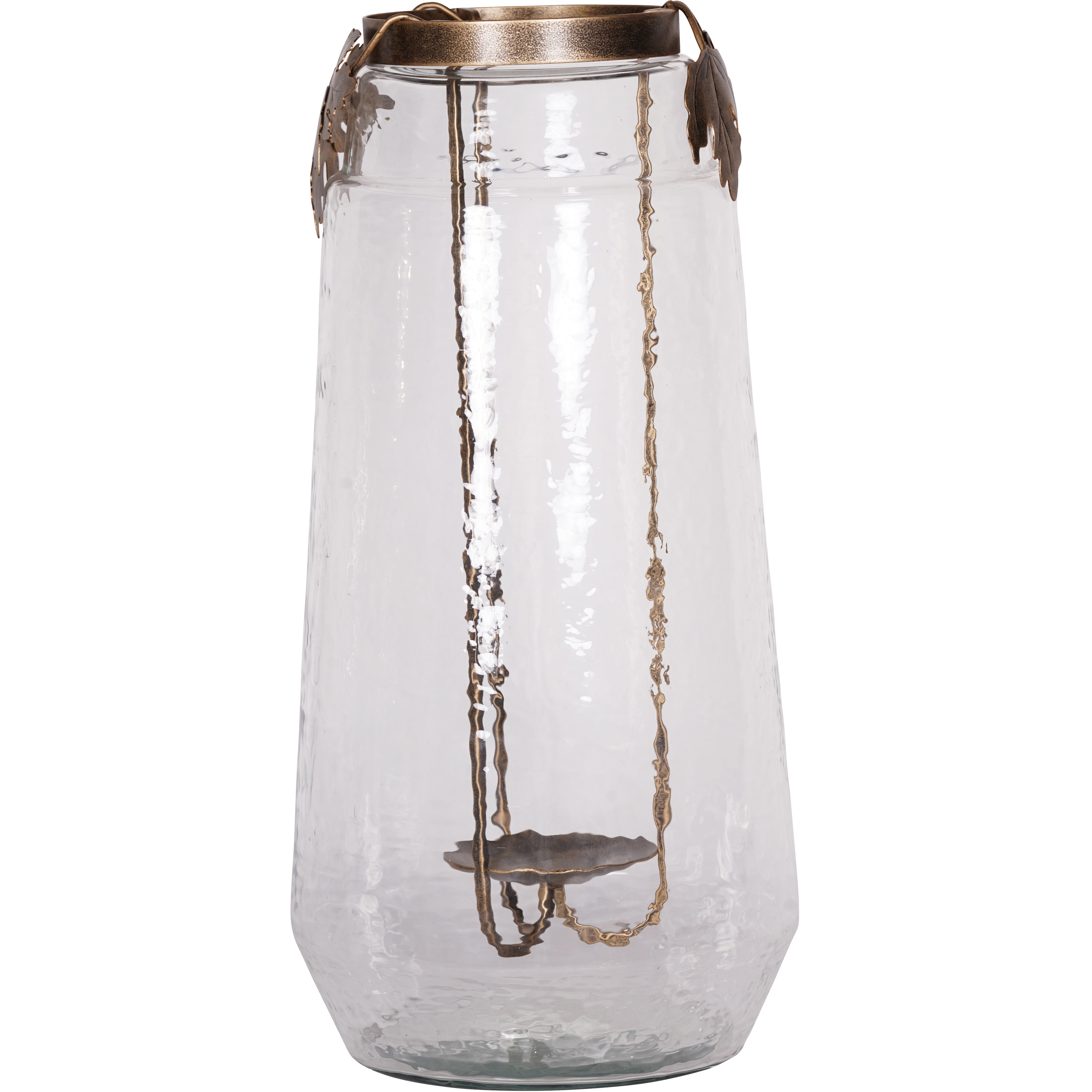 Elevate your home decor with the Laura Ashley Extra Large Leaf Bottle Hurricane. Crafted with stunning hammered glass and delicate Corrina leaves, this elegant hurricane boasts a suspended candle holder with a 24 cm diameter. Create a warm and inviting ambiance with this eye-catching piece, perfect for any candle lover.