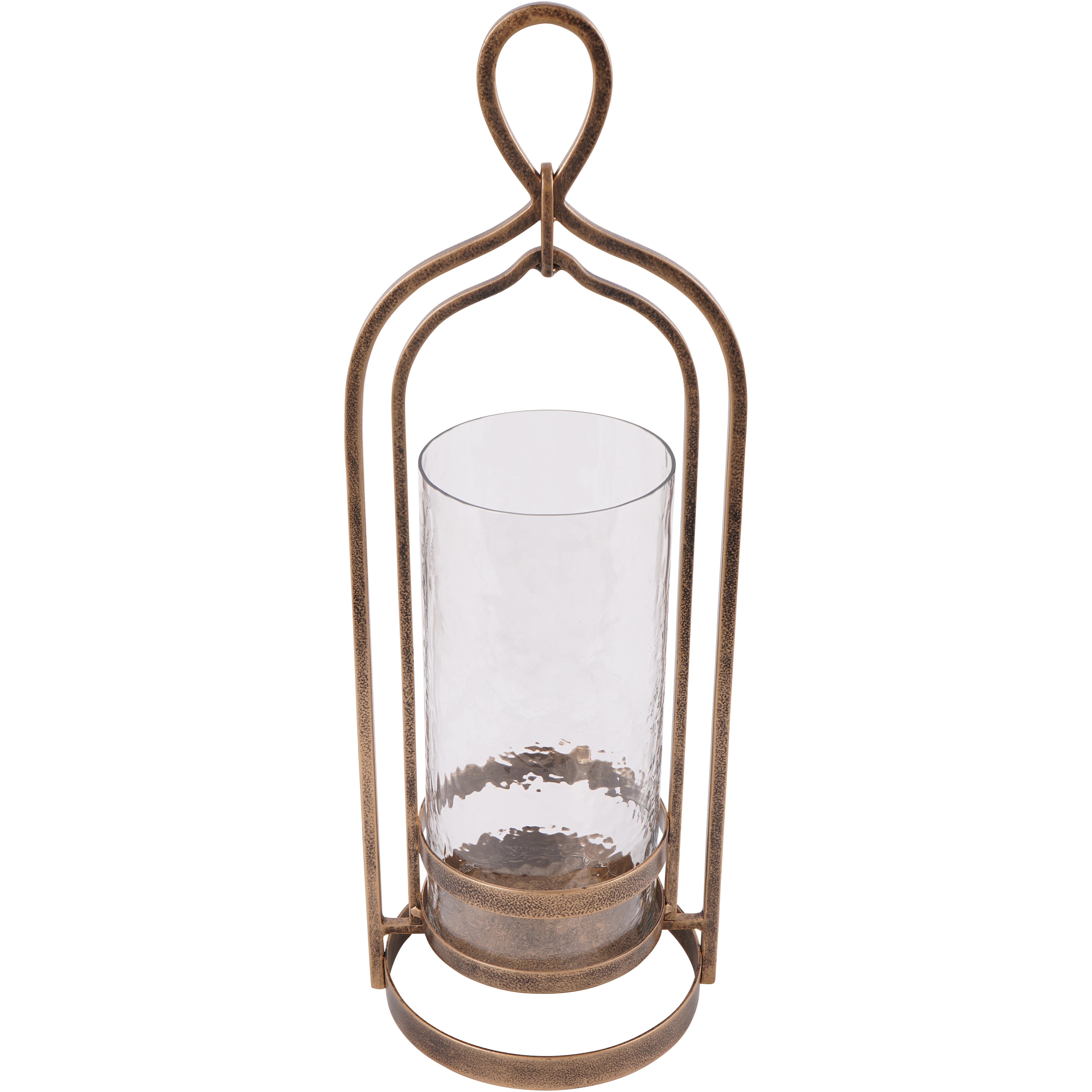 Illuminate your space with an elegant touch using the Laura Ashley Aged Gold Loop Hurricane. Crafted with a luxurious aged champagne finish and hammered glass, this iron hurricane adds a beautiful, sophisticated glow to any room. Part of the Loop candlelight collection, bringing a touch of artistic beauty to your home.