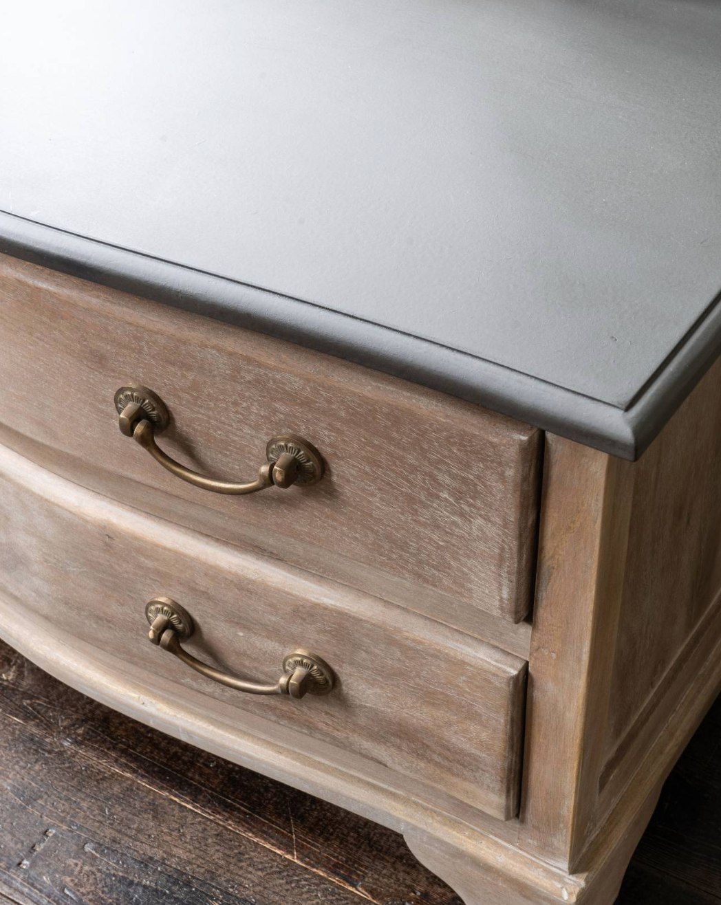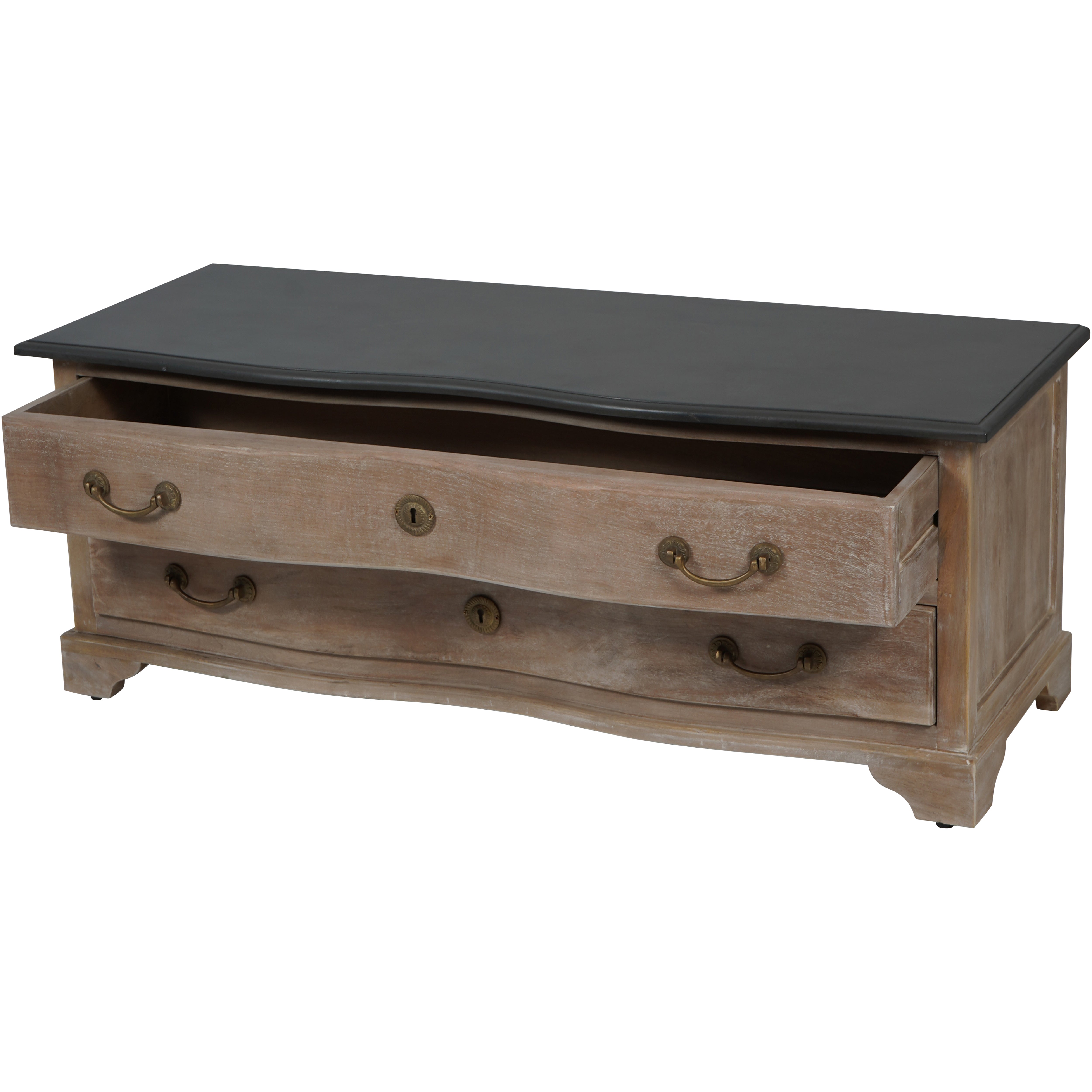 The Laura Ashley Natural Wood Swannington Storage/ TV Unit is a stunning piece of furniture that showcases fine craftsmanship. Its elegant design, featuring a thick serpentine front and chic slate grey top, provides both style and function for storing televisions and entertainment equipment. The delicate antique brass handles and decorative key hole add a touch of sophistication.