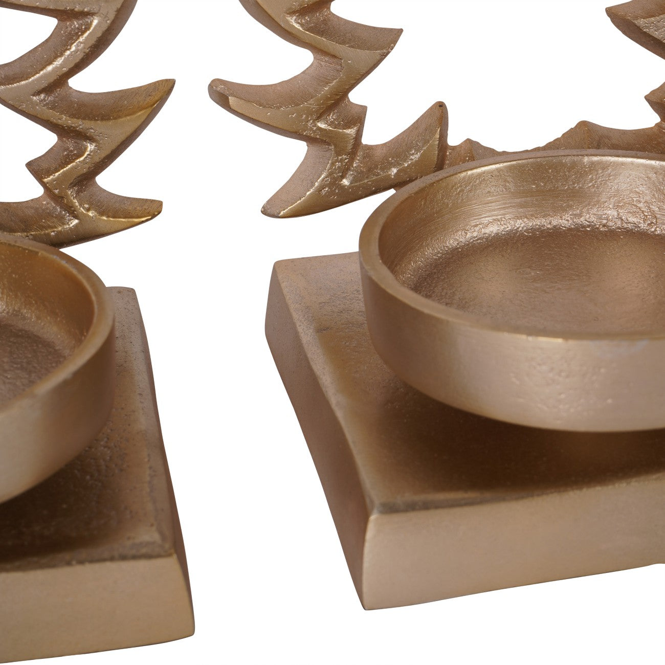 Transform your festive décor with this elegant set of 3 Christmas Tree tealight holders. Each piece showcases a refined tree silhouette cast in aluminium with a luxurious gold finish, designed to complement any seasonal display. The sturdy bases accommodate both large and standard tealights, casting a warm, inviting glow across mantels, dining tables, and windowsills. Perfect for layering ambient lighting throughout your home during the festive season. Also available in Gold.