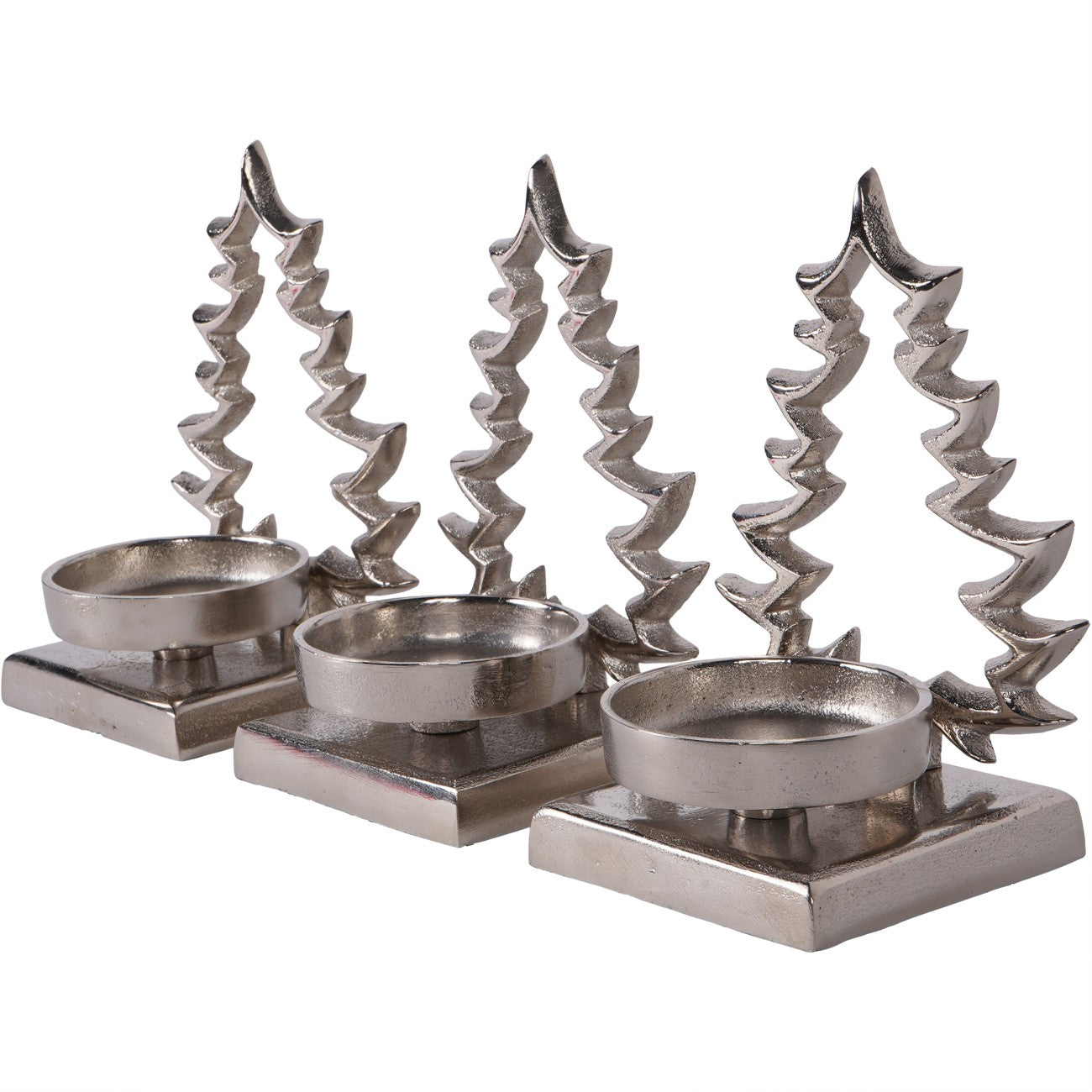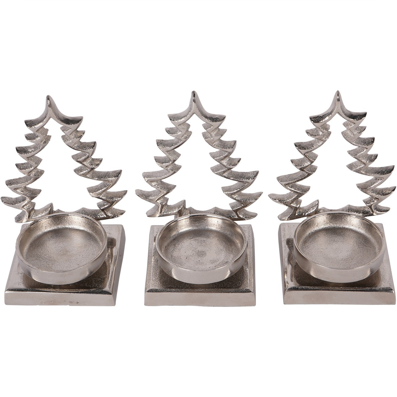 Laura Ashley Set of 3 Aluminium Xmas Tree Silver Tealight