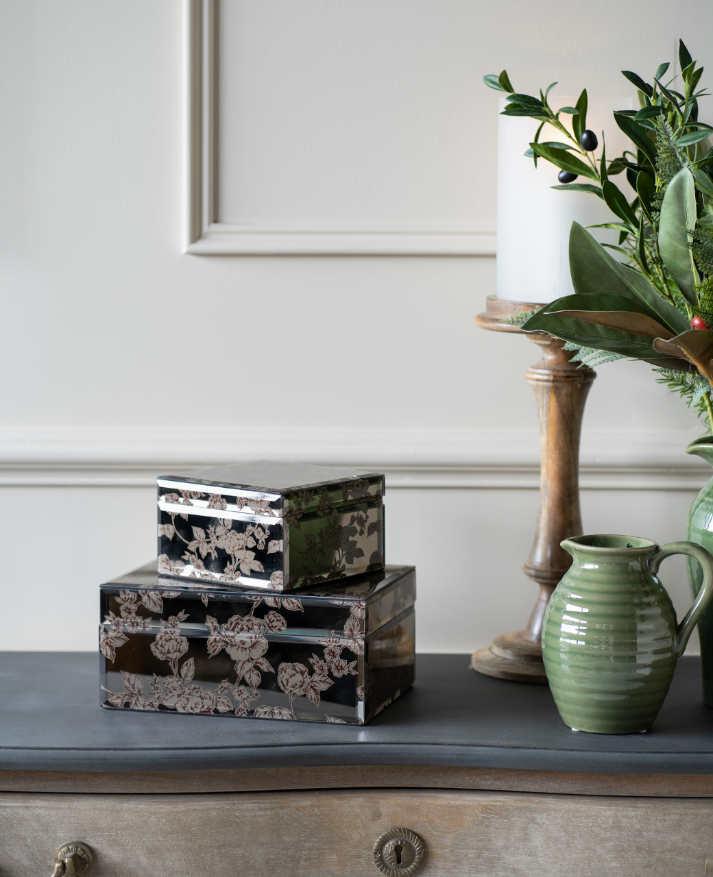 Laura Ashley Truffle Pollington Roses Medium Mirrored Printed Jewellery Box