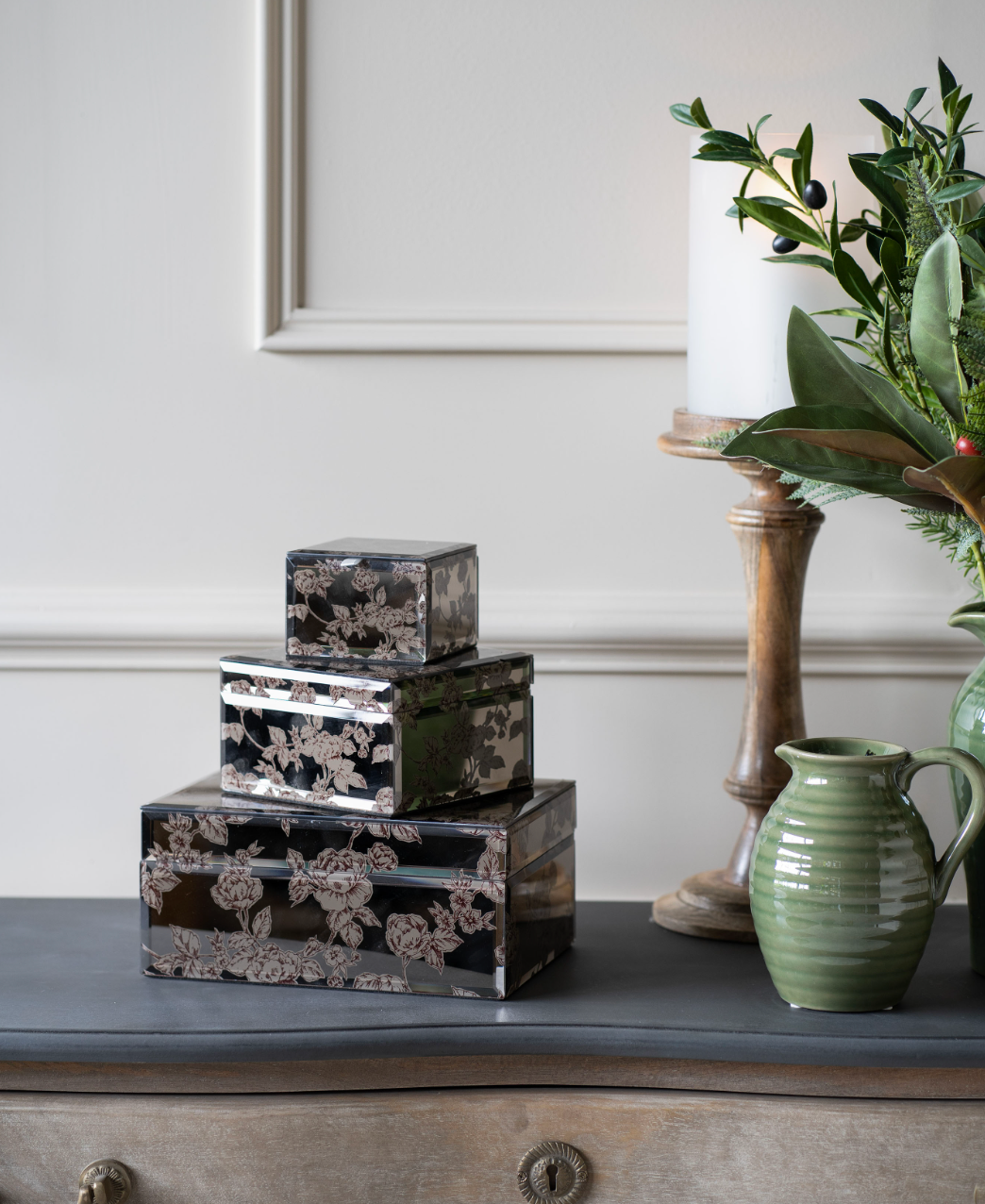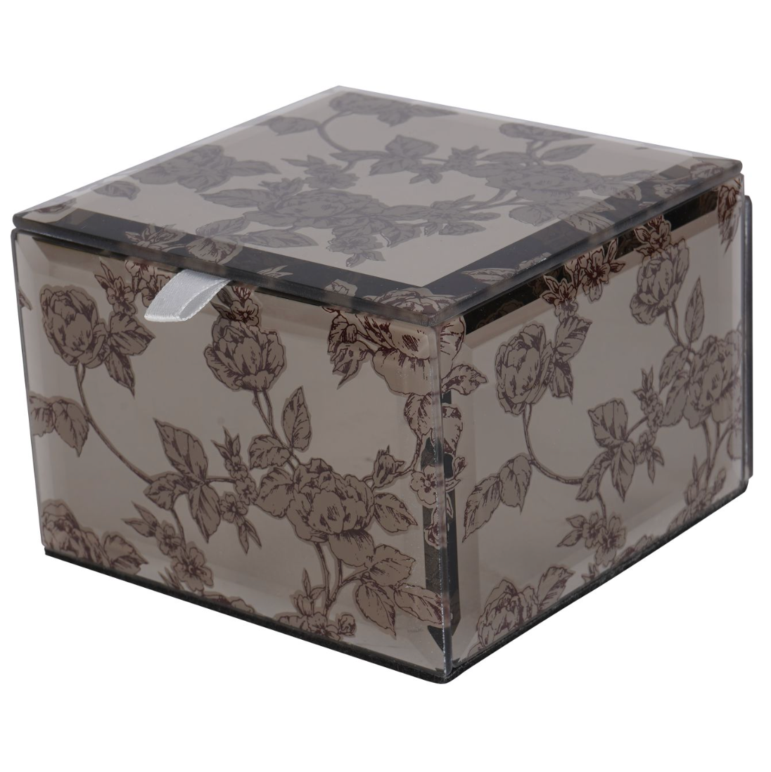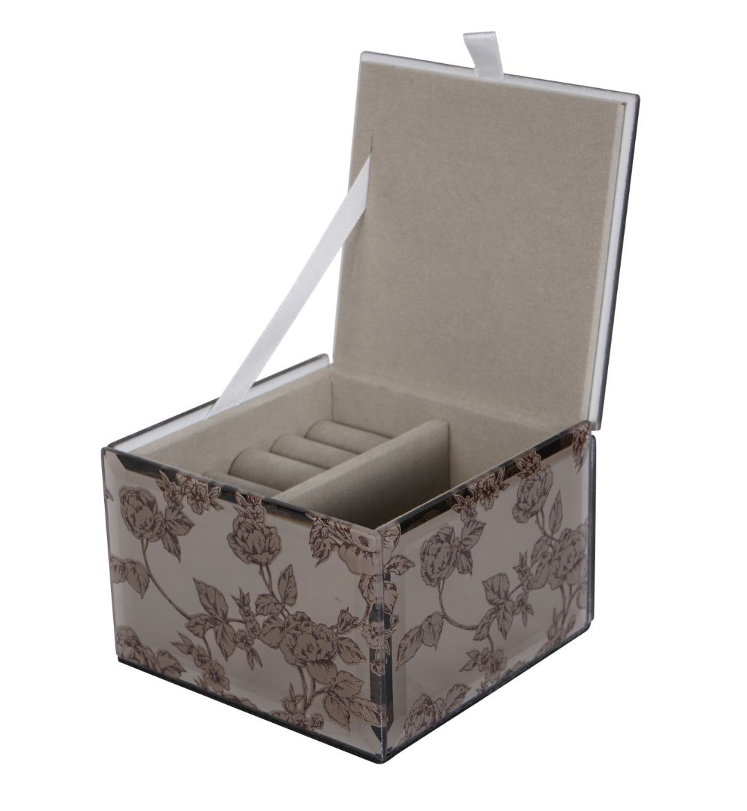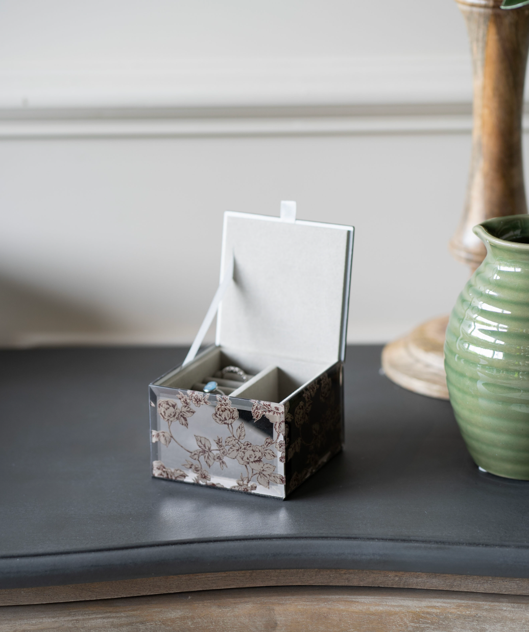 Laura Ashley Truffle Pollington Roses Small Mirrored Printed Jewellery Box