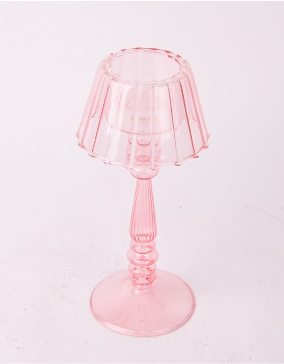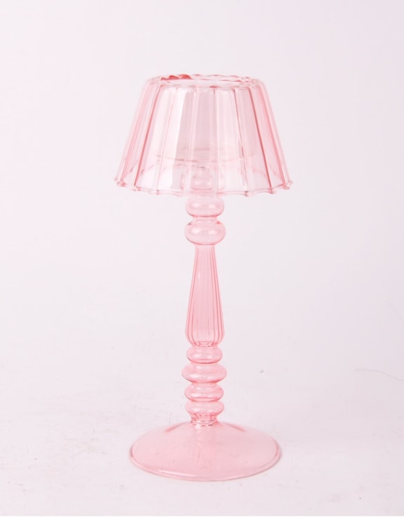 Illuminate any space with elegance using our Light Pink Lamp-Style Glass Tealight Holder. Standing at 20cm tall, it adds a touch of charm to any garden party or room ambiance. Available in additional colours.