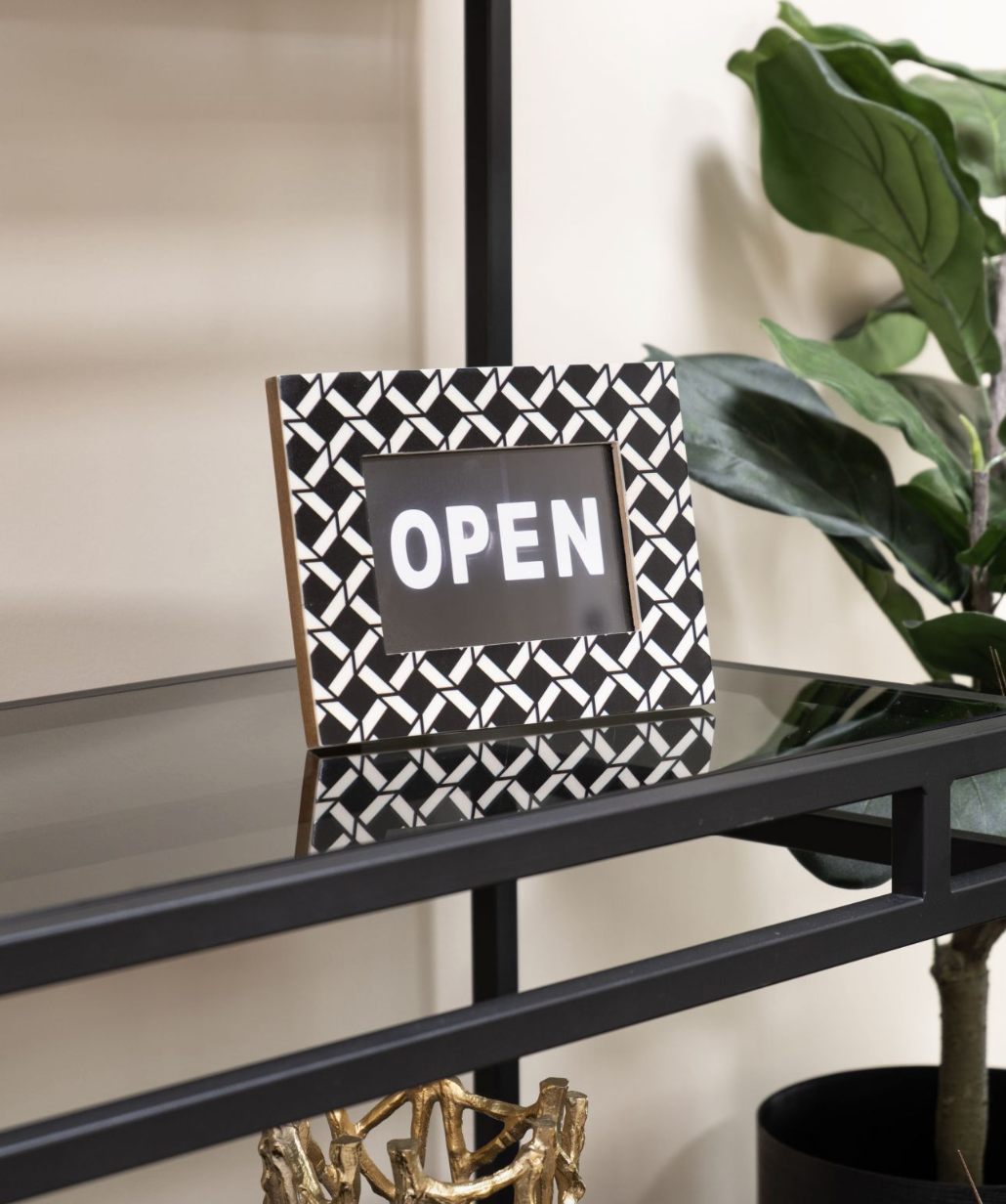 Expertly display memories in style with the Louisa Photo frame. Made with a striking black and white geometric design, this 10x15cm frame features a playful and easily interchanged photo insert. Perfect for portrait or landscape display options, this frame is a must-have for any home.
