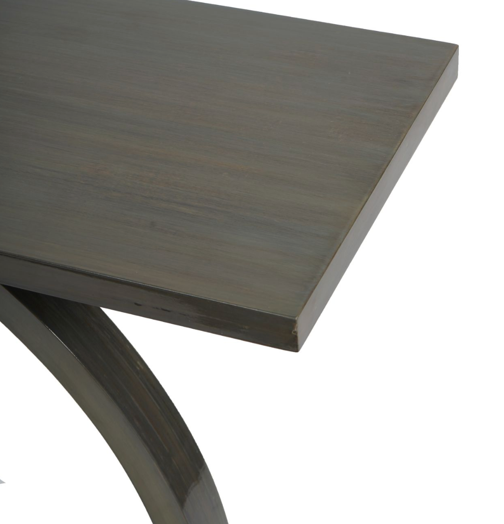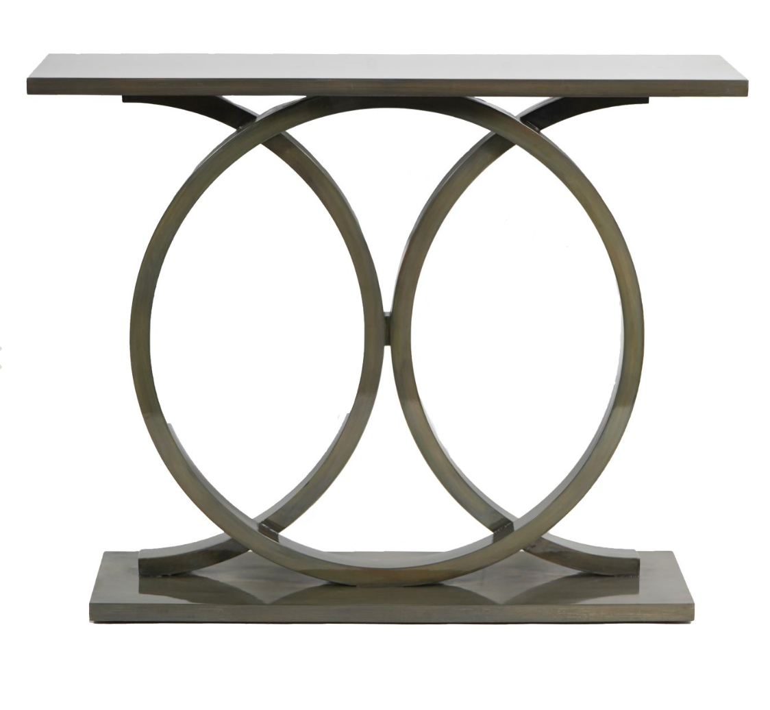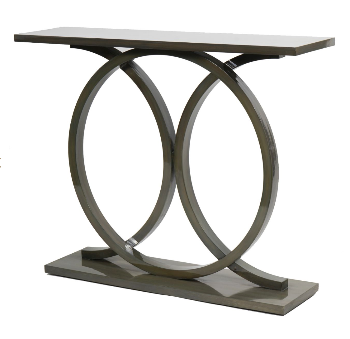 The Lucille Olive Lacquer Console Table features elegant circle and half circle legs, adding a touch of sophistication to any space. Its smooth olive lacquer finish adds a sleek and modern touch. Complete the look with matching accessories.