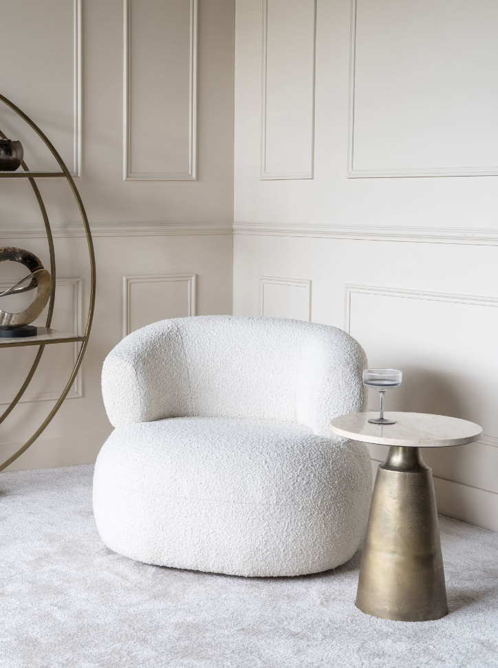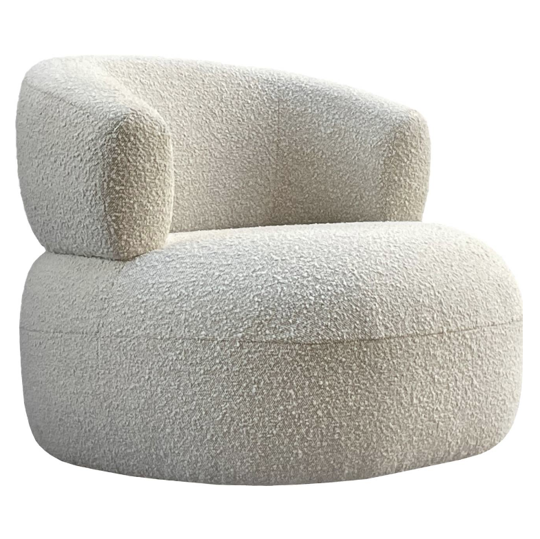 Introducing the Lucy Occasional Chair in Boucle Cream. This comfortable and stylish chair is upholstered in a curly boucle fabric, making it the perfect place to relax and read a book. The rich cream finish add a touch of elegance to any home. Improve your daily lounging experience by adding this beautiful chair to your space.