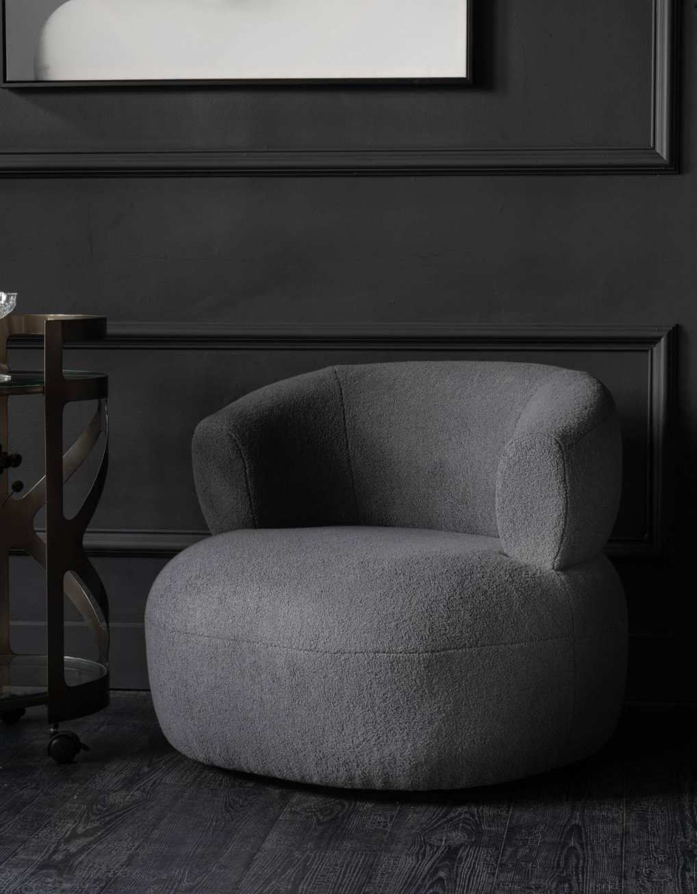 Introducing the Lucy Occasional Chair in Boucle Grey. This comfortable and stylish chair is upholstered in a curly boucle fabric, making it the perfect place to relax and read a book. The soft Grey finish and sturdy black metal feet add a touch of elegance to any home. Improve your daily lounging experience by adding this beautiful chair to your space.
