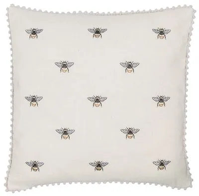 Elevate your home decor with the Beeze cushion! Adorned with beautifully embroidered bees and a charming pom pom edge, this stylish cushion will add a touch of sophistication to any room. Made from a blend of soft cotton, linen, and polyester, it offers both comfort and style. Make a statement with this must-have accessory for your home!