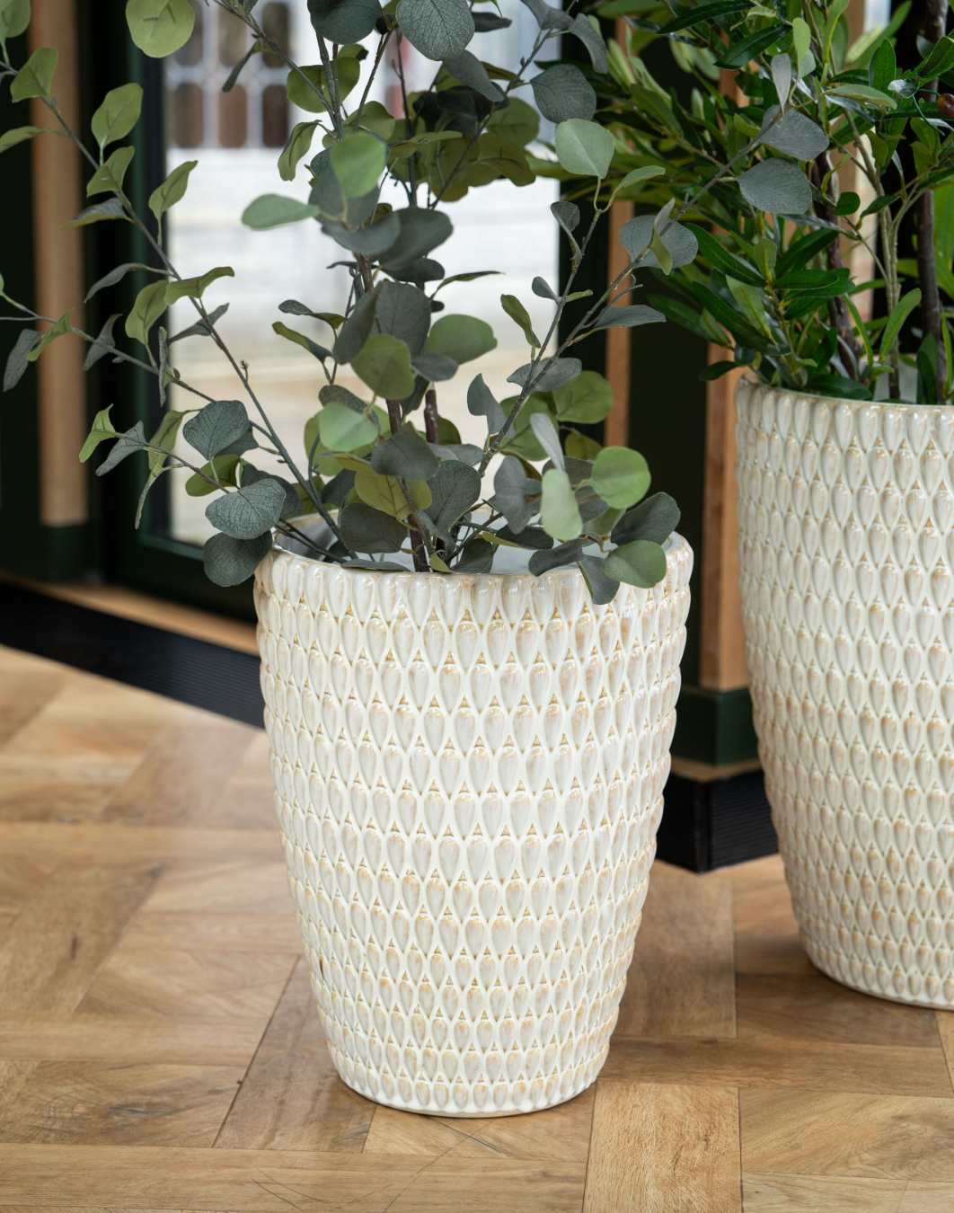 Elevate your space with our Mediterranean Cream Reactive Glaze Ceramic Planter. Its captivating colours and refined design make it perfect for showcasing plants and adding a serene touch to any interior. Explore our full collection for more elegant pieces. Indoor use only.
