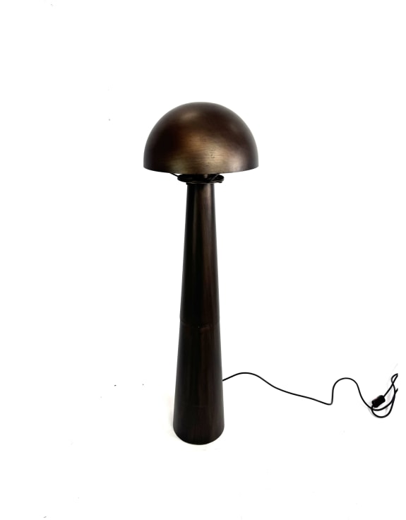Get ready to light up your space with our Medium Mushroom Floor Lamp! This quirky lamp features a charming antique bronze finish and a sturdy industrial metal design. It's the perfect addition to any room, providing both style and function.