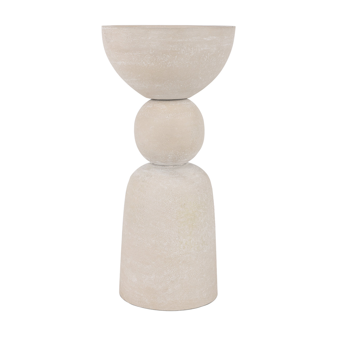 Discover understated elegance with the Vail Ball Putty Centre Pillar Holder. This medium-sized aluminium piece has been finished in a putty stonewash finish with a subtle chalked texture that invites touch. The graceful ball detail and stepped base showcase timeless proportions, making it the perfect addition to mantels, consoles, or styled table arrangements. Whether showcasing a pillar candle or standing alone as a sculptural accent, this refined holder brings quiet sophistication to your interior. Indoor use only.
